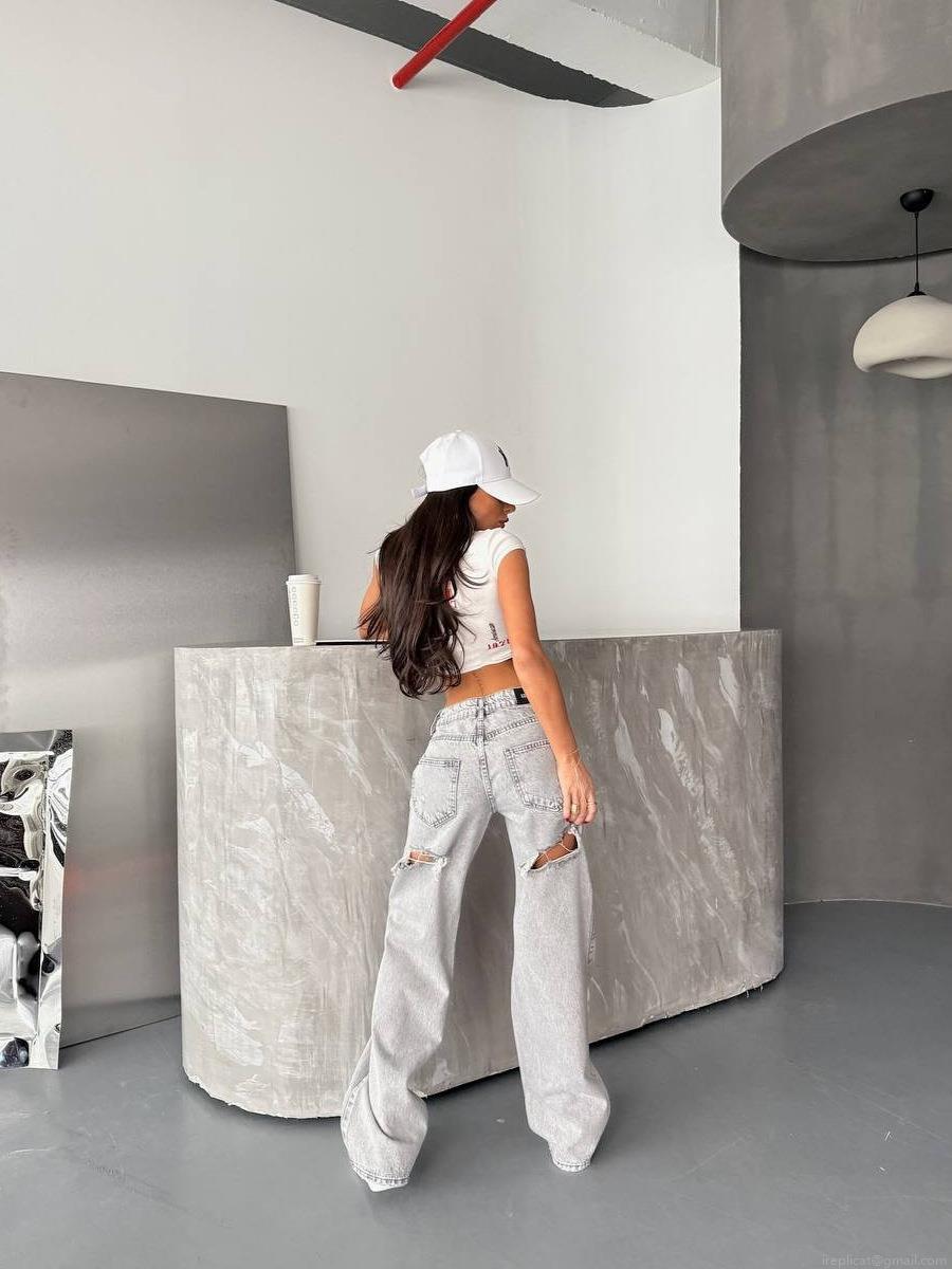 American Vintage High Waist Washed Distressed Wide Leg Jeans Women Back Leg Hole Design Street Style Denim Trousers 100% Cotton Wide Leg Pants