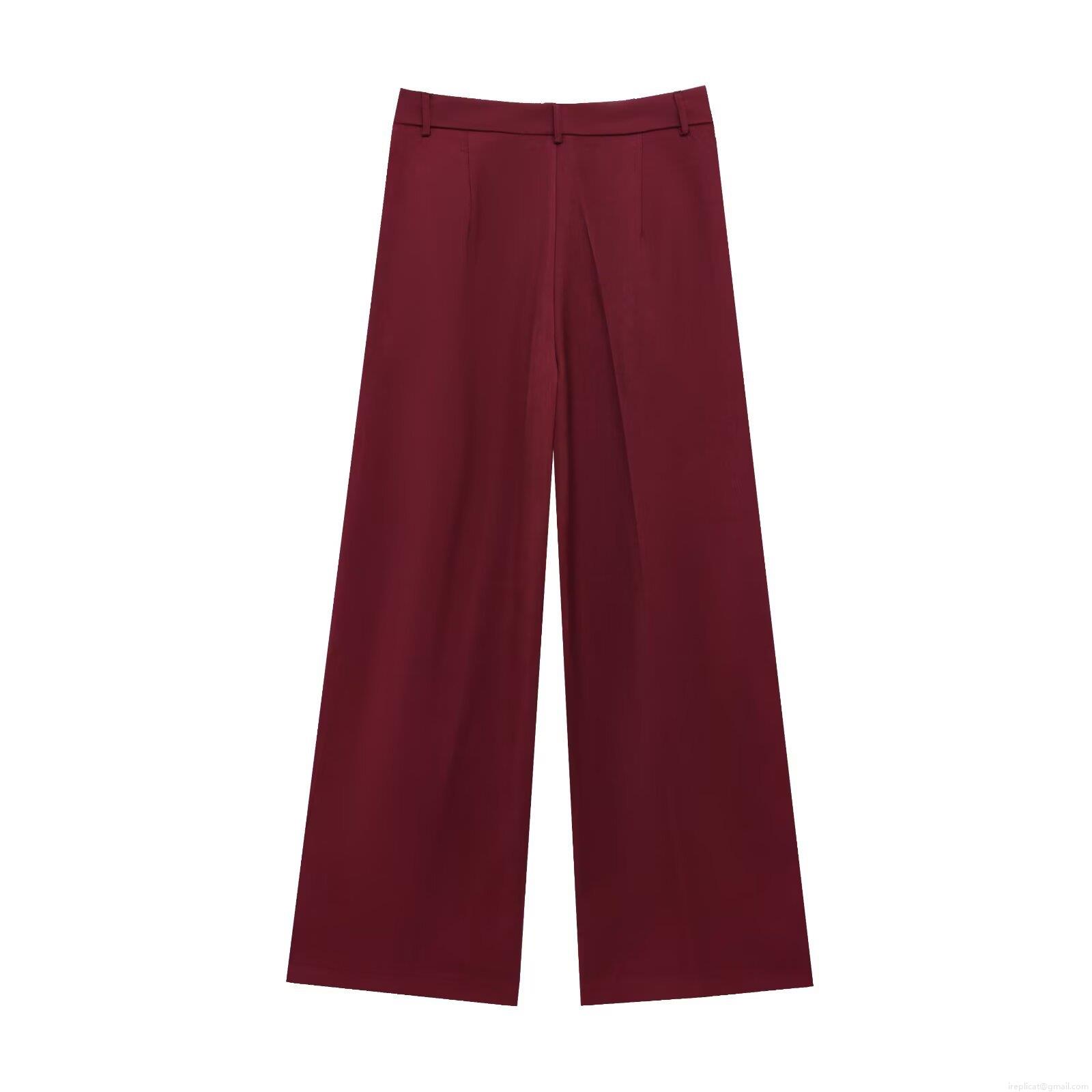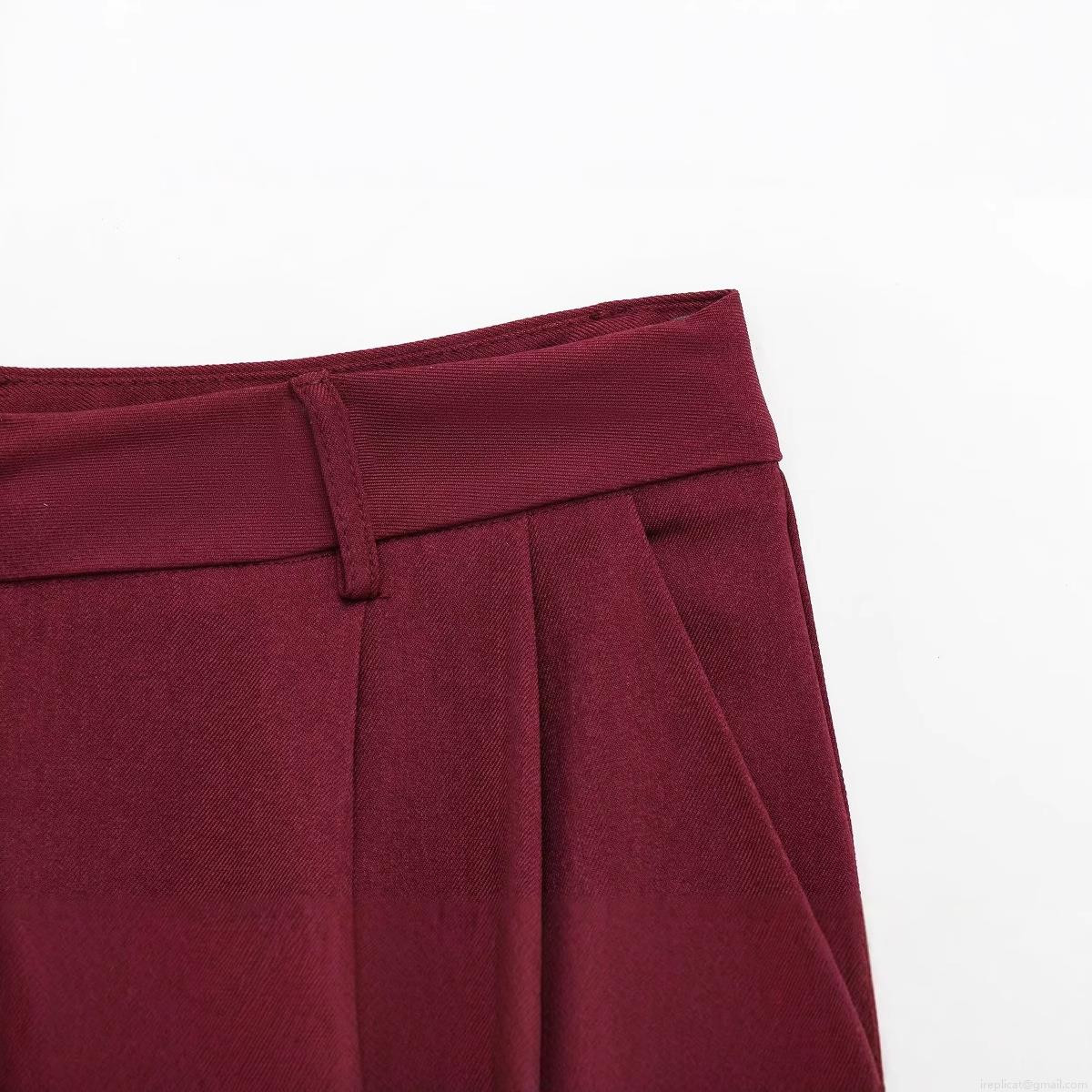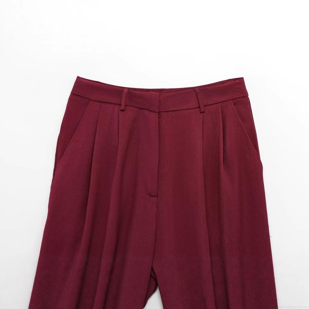 Elegant Burgundy High Waist Wide Leg Suit Pants Women's Office Career Drapey Twill Straight Trousers Casual Minimalist Slim Fit Long Trousers