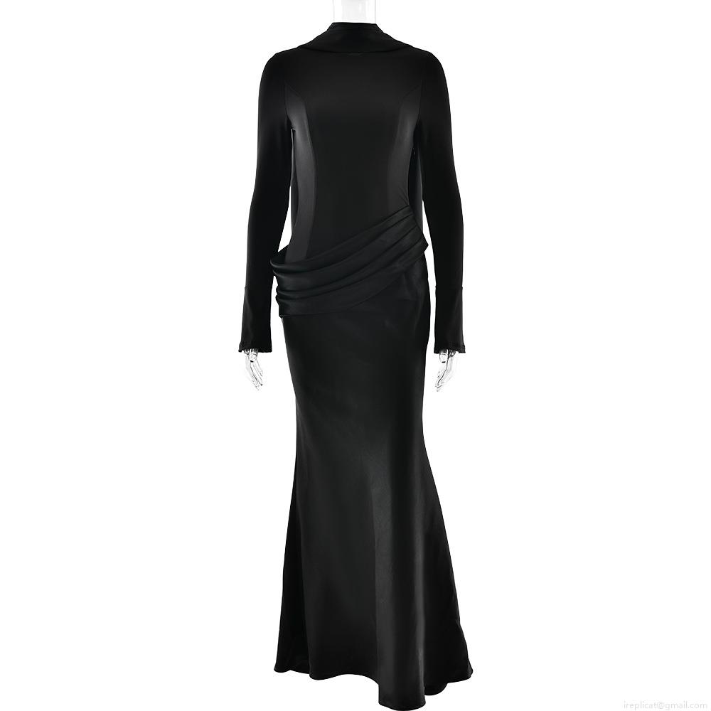 Solid Color, Splice, Scarf, Pleats, Slim Fit, Fishtail Hem