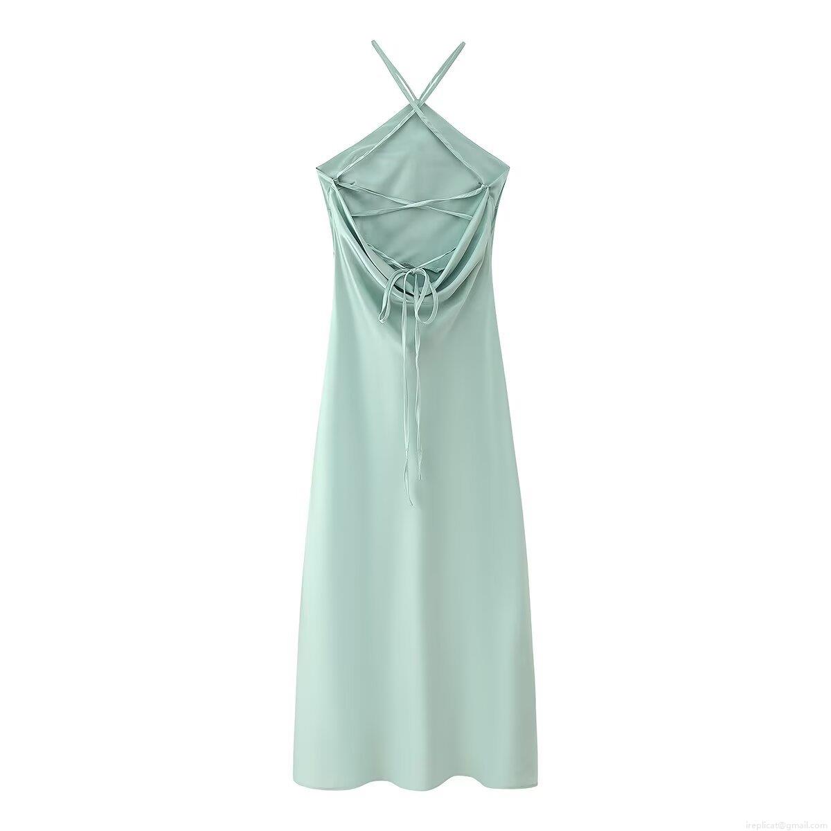 Elegant Sage Mint Green Satin Halter Backless Maxi Dress For Women Sexy Pleated Waist High Slit Evening Party Wedding Guest Formal Evening Gown