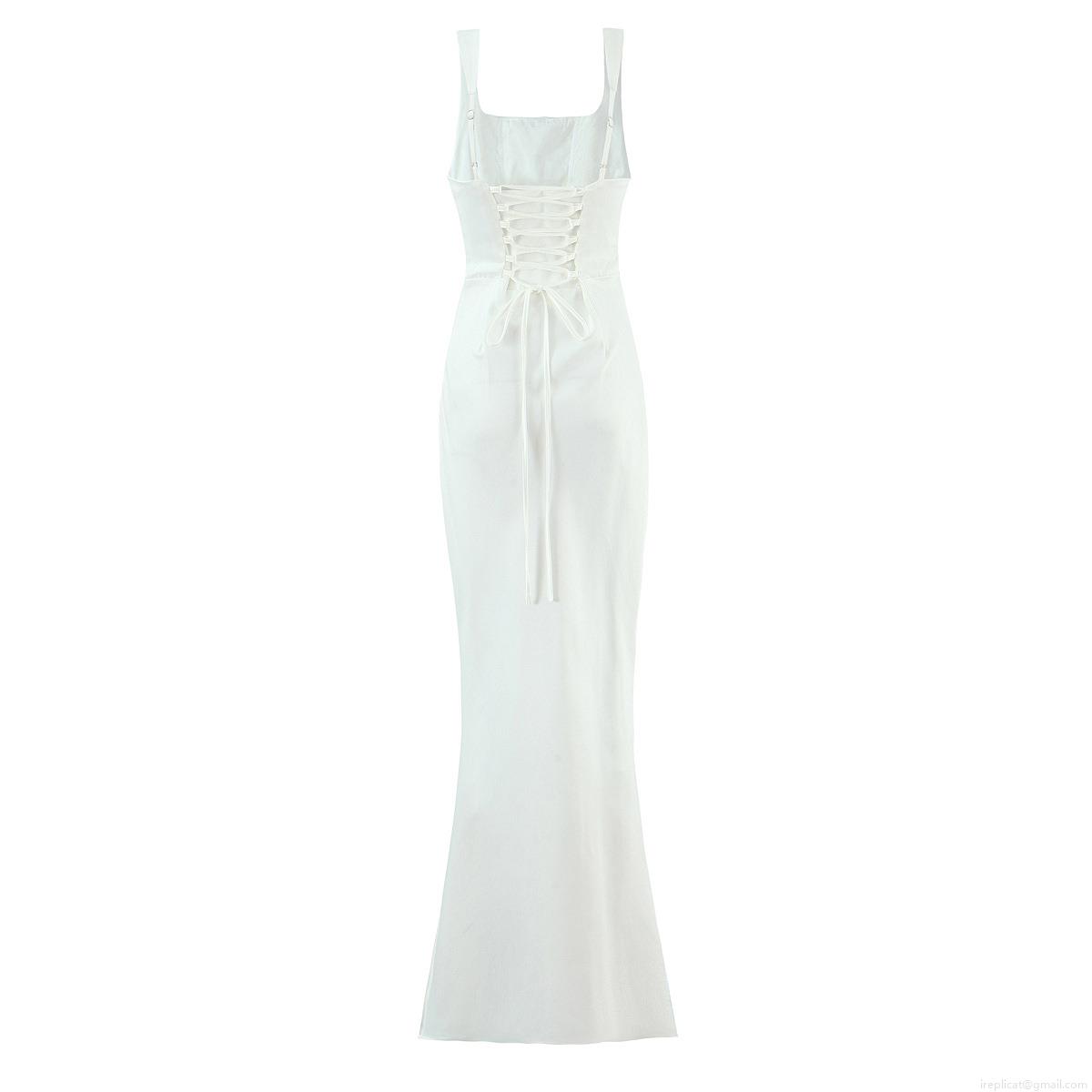 Elegant Satin Maxi Evening Dress For Women Square Neck Sleeveless Lace-Up Back Ruched Bodycon Fish Tail Formal Party Wedding Guest Prom Gown