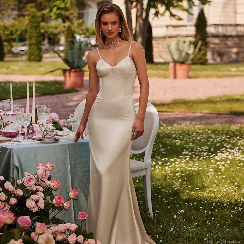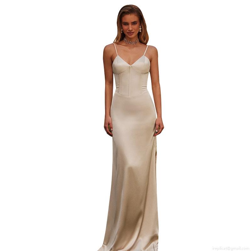 Elegant Satin V-Neck Slip Maxi Dress With High Slit Sexy Corset Backless Evening Gown For Women Wedding Party Summer Vacation