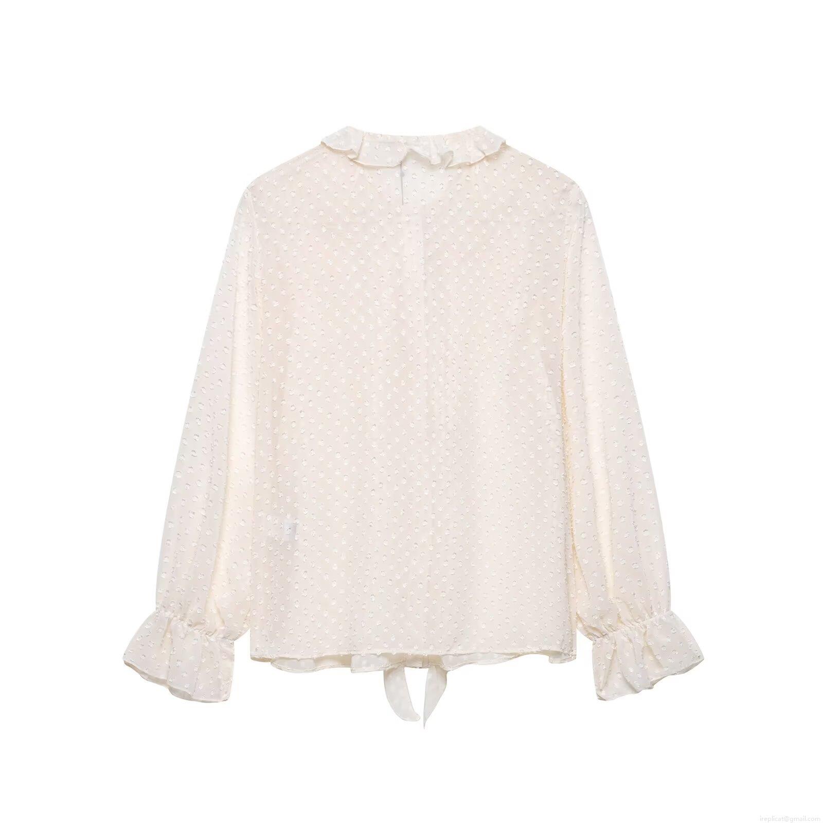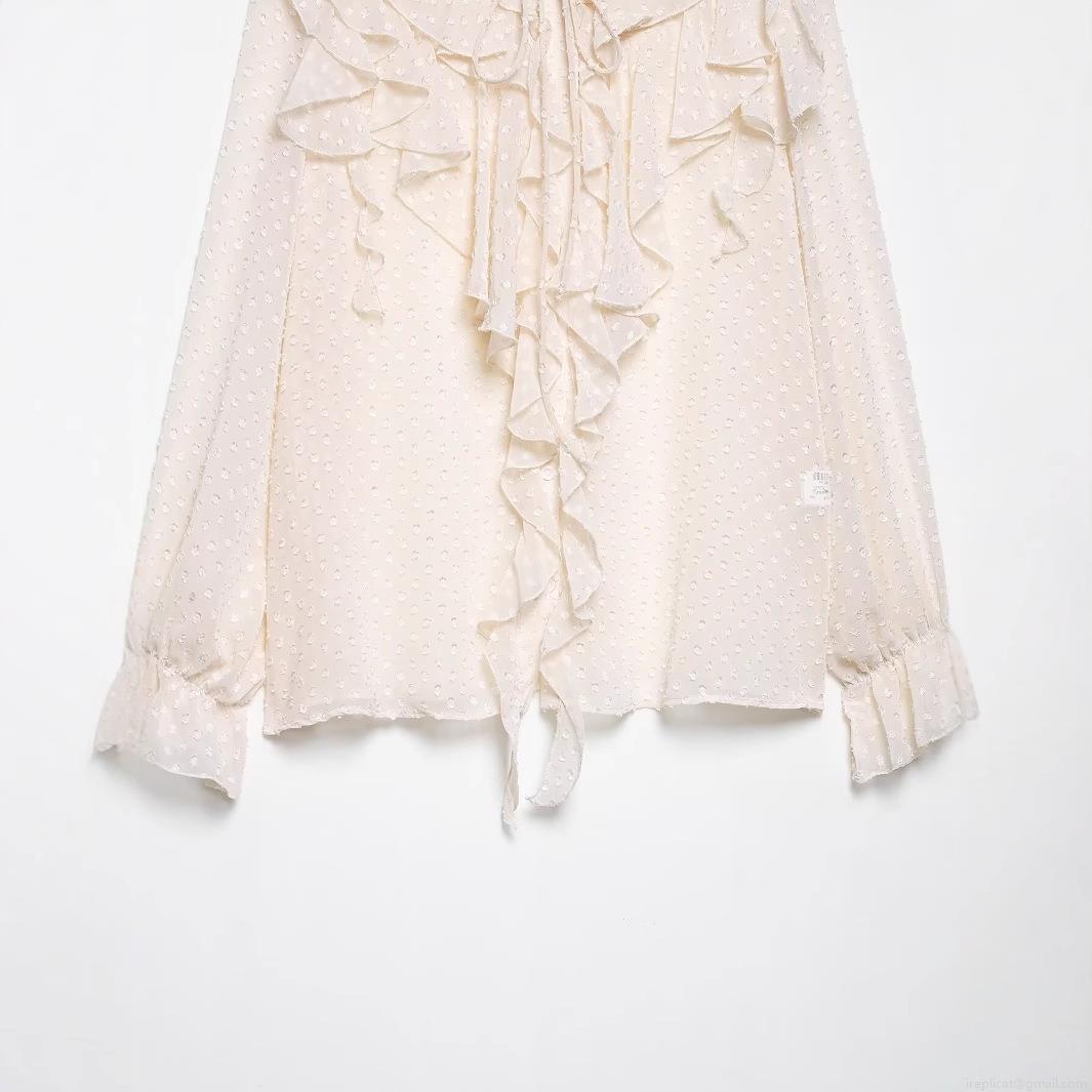 Elegant Swiss Dot Ruffle Chiffon Blouse Women French Style Tie Neck Layered Flounce Long Sleeve Sheer Mesh Shirt Top For Party Daily Wear