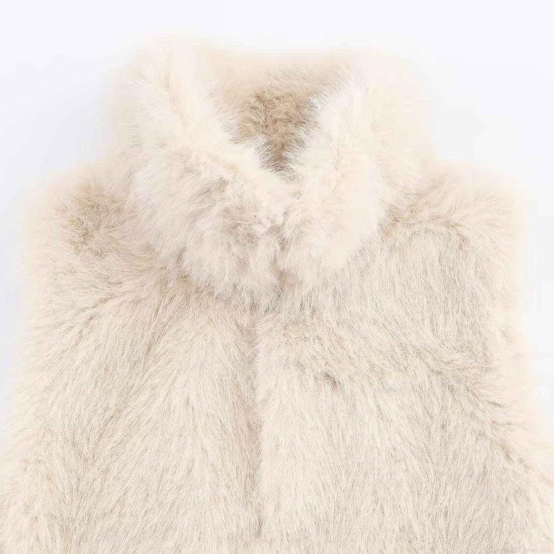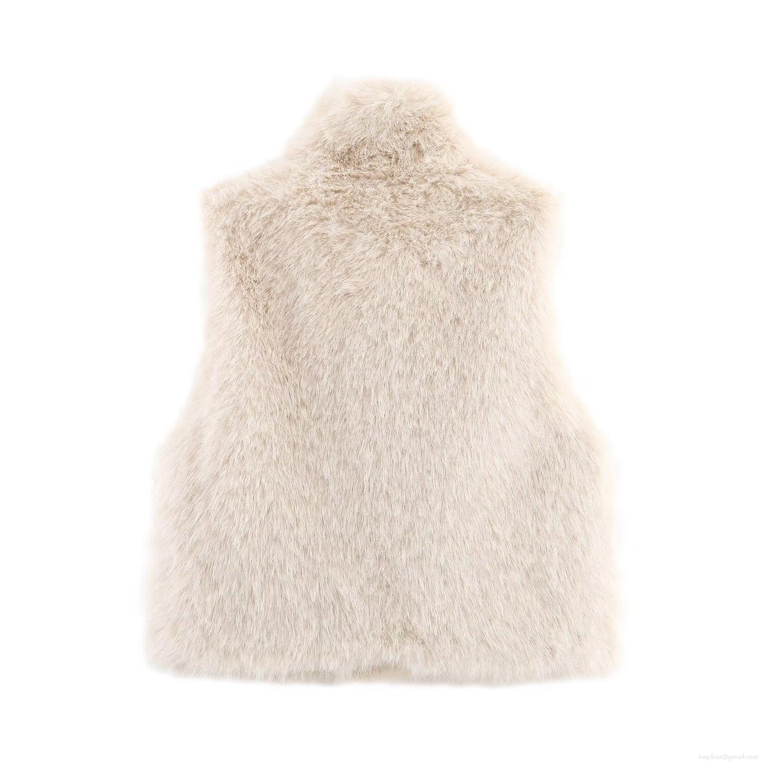 Elegant Women Faux Fur Vest With High Stand Collar Sleeveless Thick...