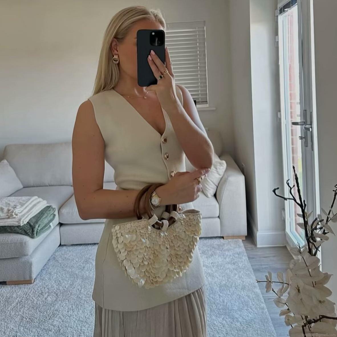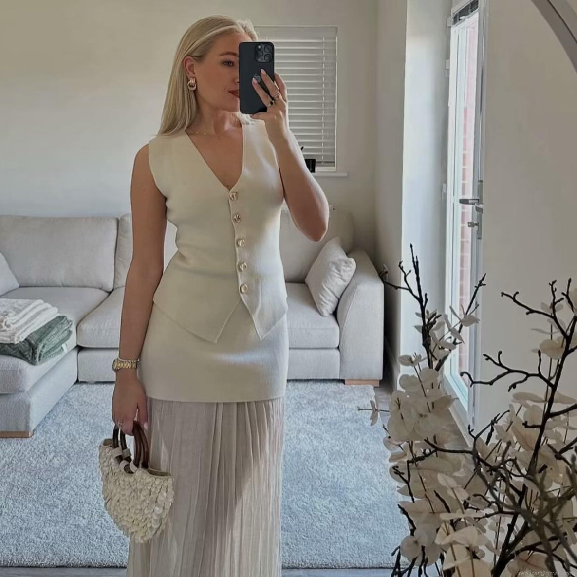 Elegant Women's Knitted Vest V-Neck Sleeveless Button Down Tank Top Minimalist Polyester Slim Fit Sweater Vest for Office Commute Daily Wear