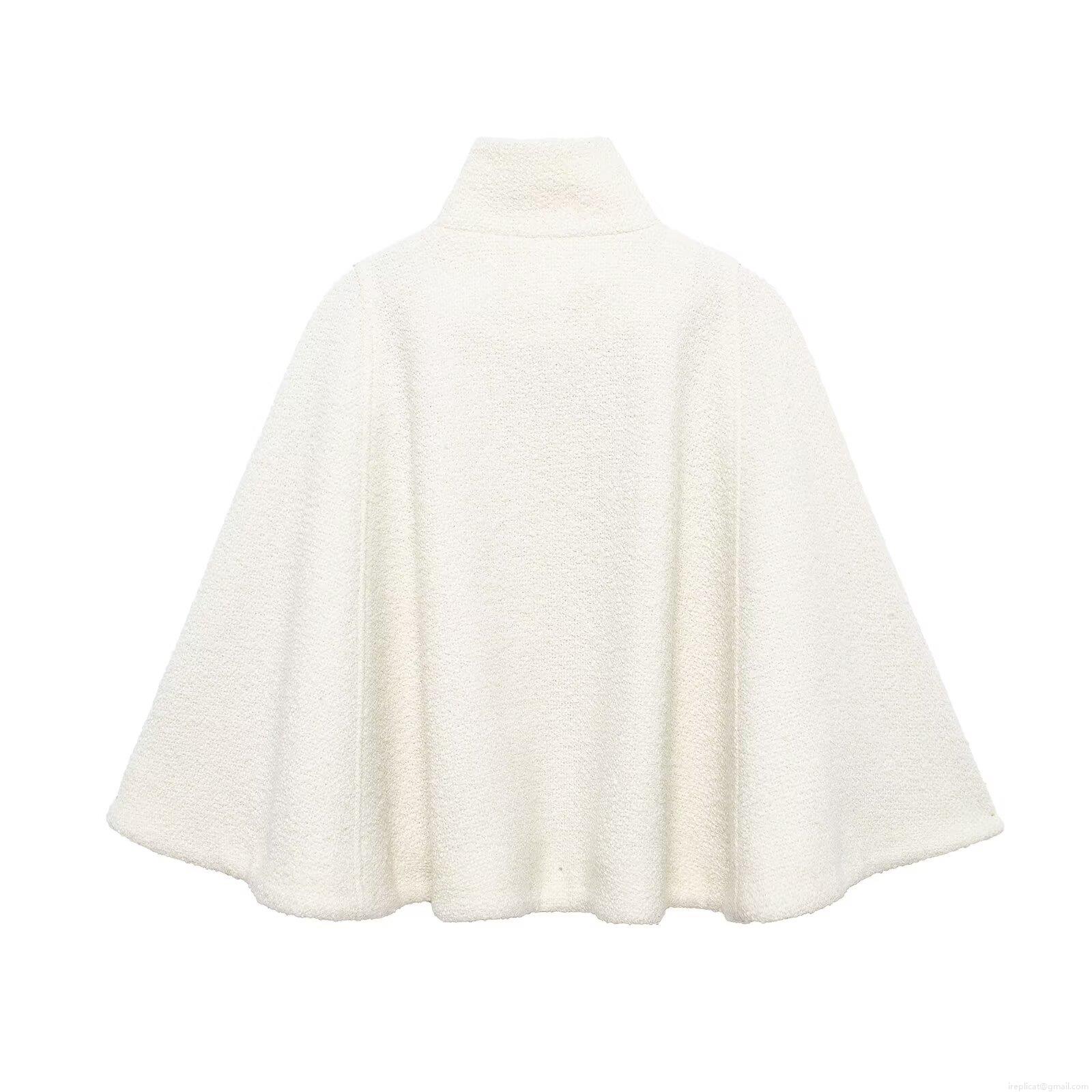 Elegant Women's Stand Collar Cloak Coat Polyester Textured Warm Outerwear Jacket For Autumn Winter Office Daily British Style Lady Jacket