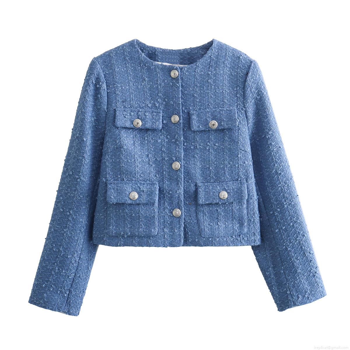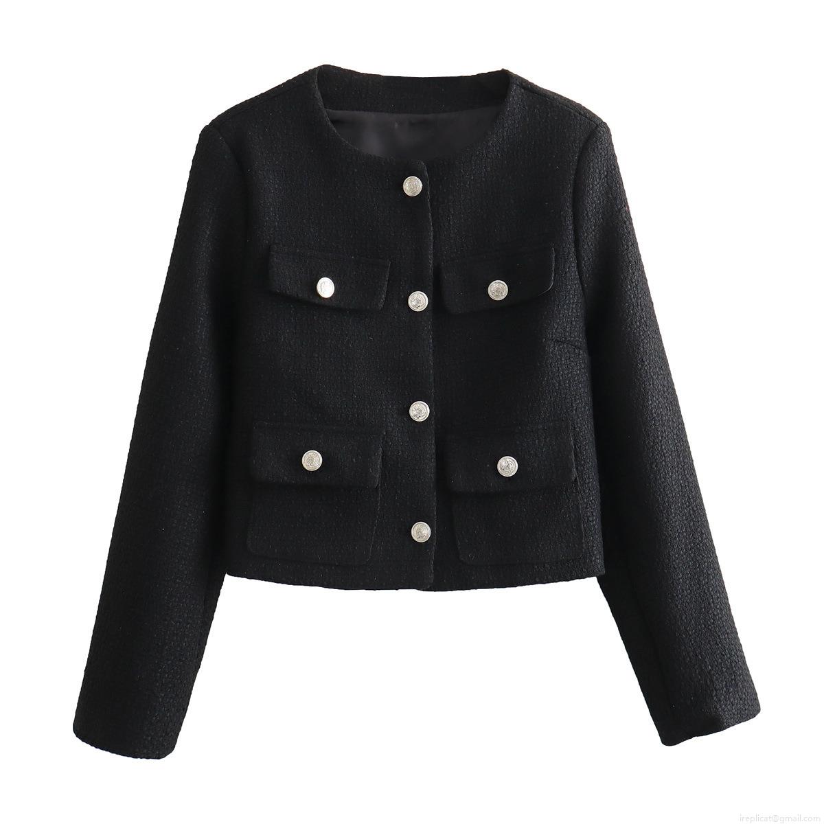 Solid Color, Tweed, Woven Texture, Metal Embossed Buttons, Decorative Pouch