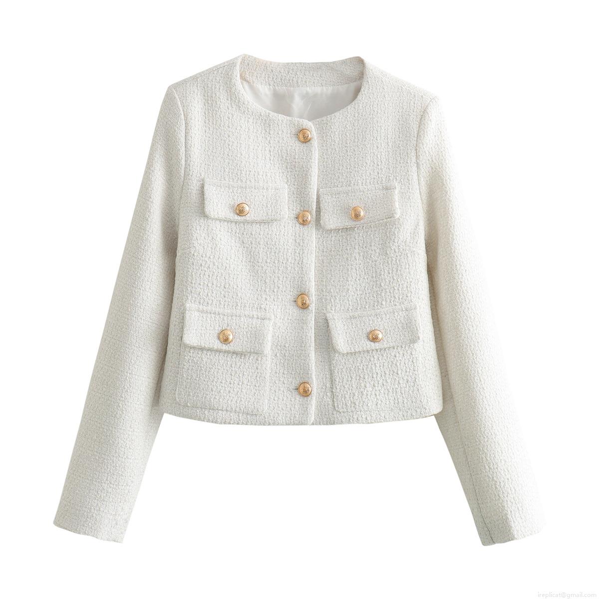 Elegant Women's Tweed Jacket Long Sleeve Button Down Short Coat French Style Plaid Textured Outerwear With Metal Buttons For Party Office Casual Ladies