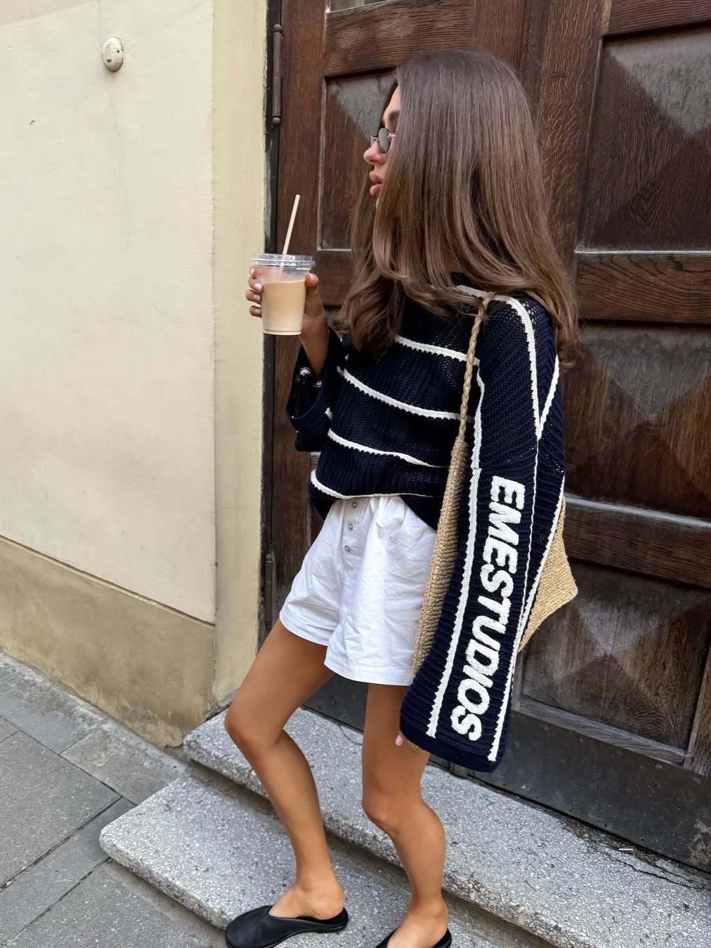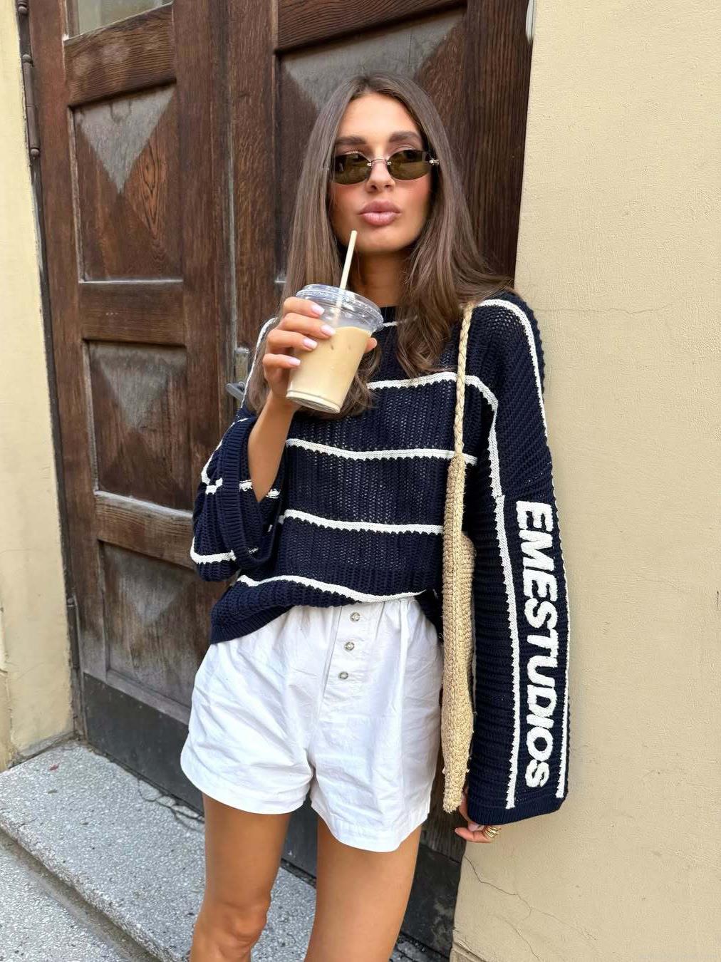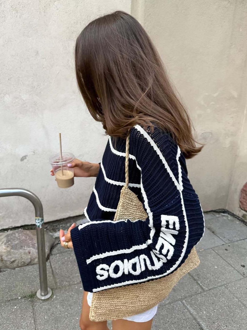 Stripe, Color-blocked Stripes, Letter Jacquard, Drop Shoulder Design