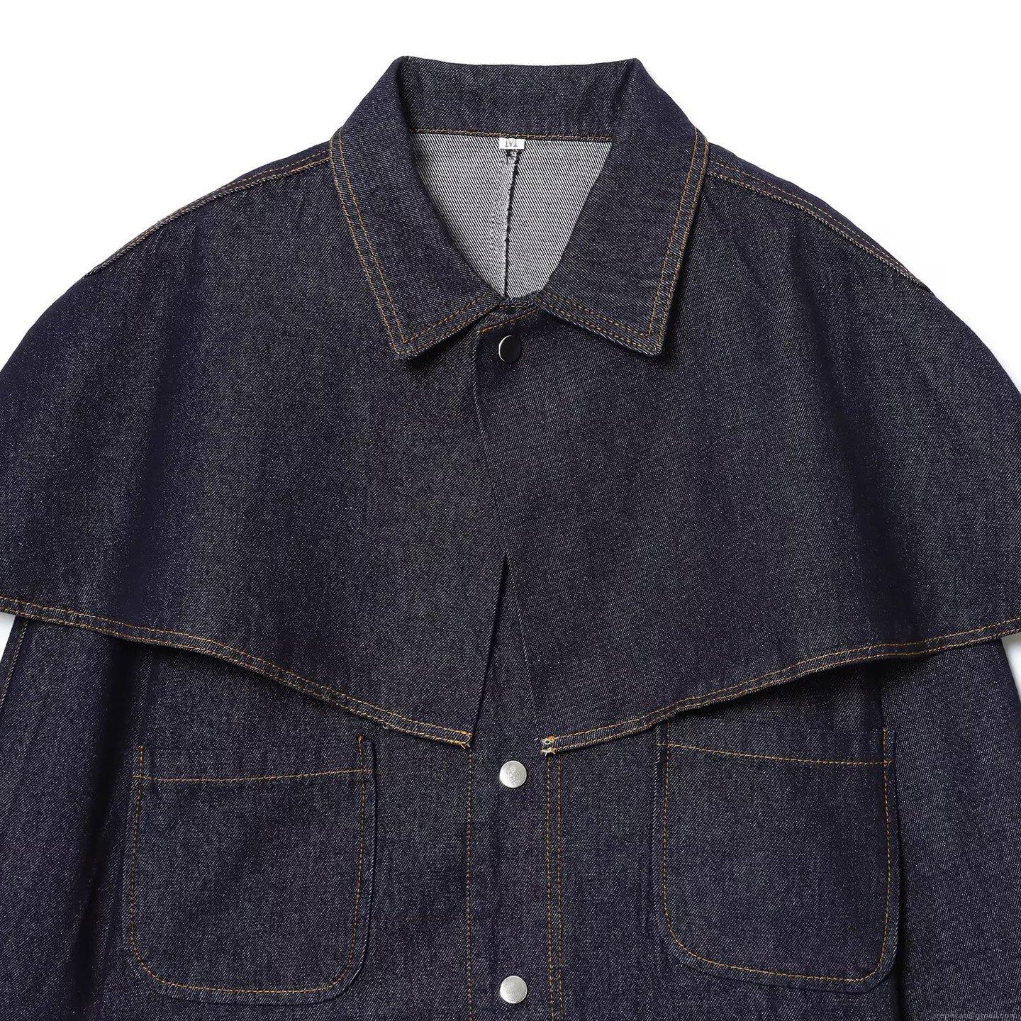 Fashion Women Denim Cloak Jacket Loose Casual Long Sleeve Button Up Denim Top With Pockets For Winter Autumn Sweet Design Denim Outwear