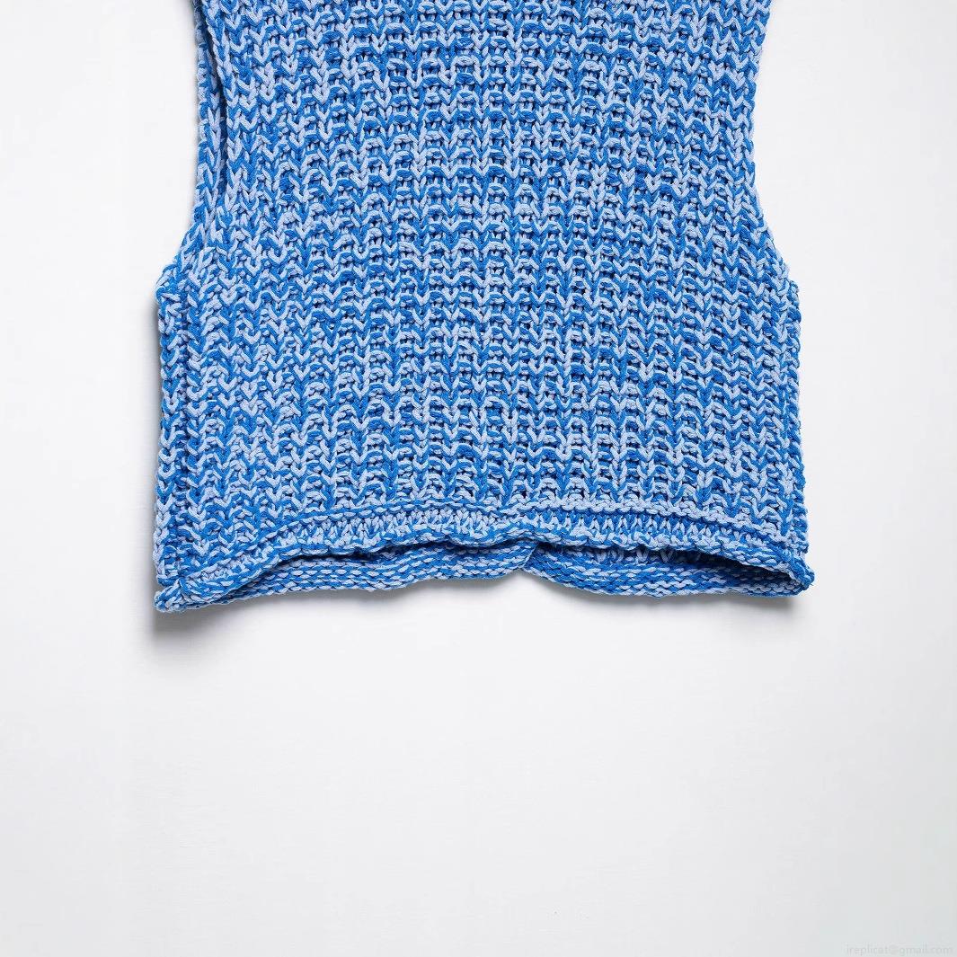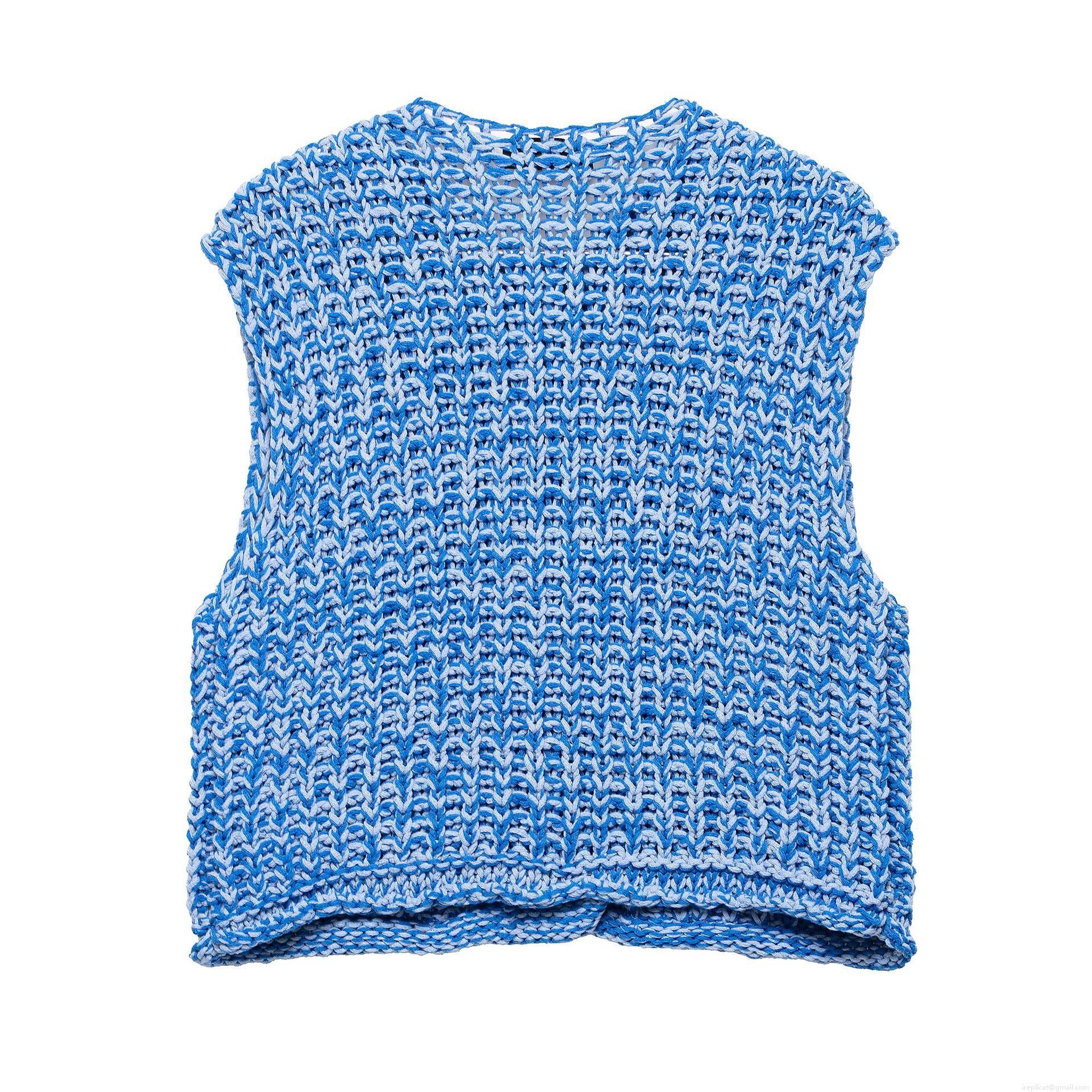 French Style Slim Fit Chunky Knit Vest Cardigan For Women Sleeveless Button Up Mixed Blue Polyester Top With Pockets Daily Dating Chic Lady Knitwear