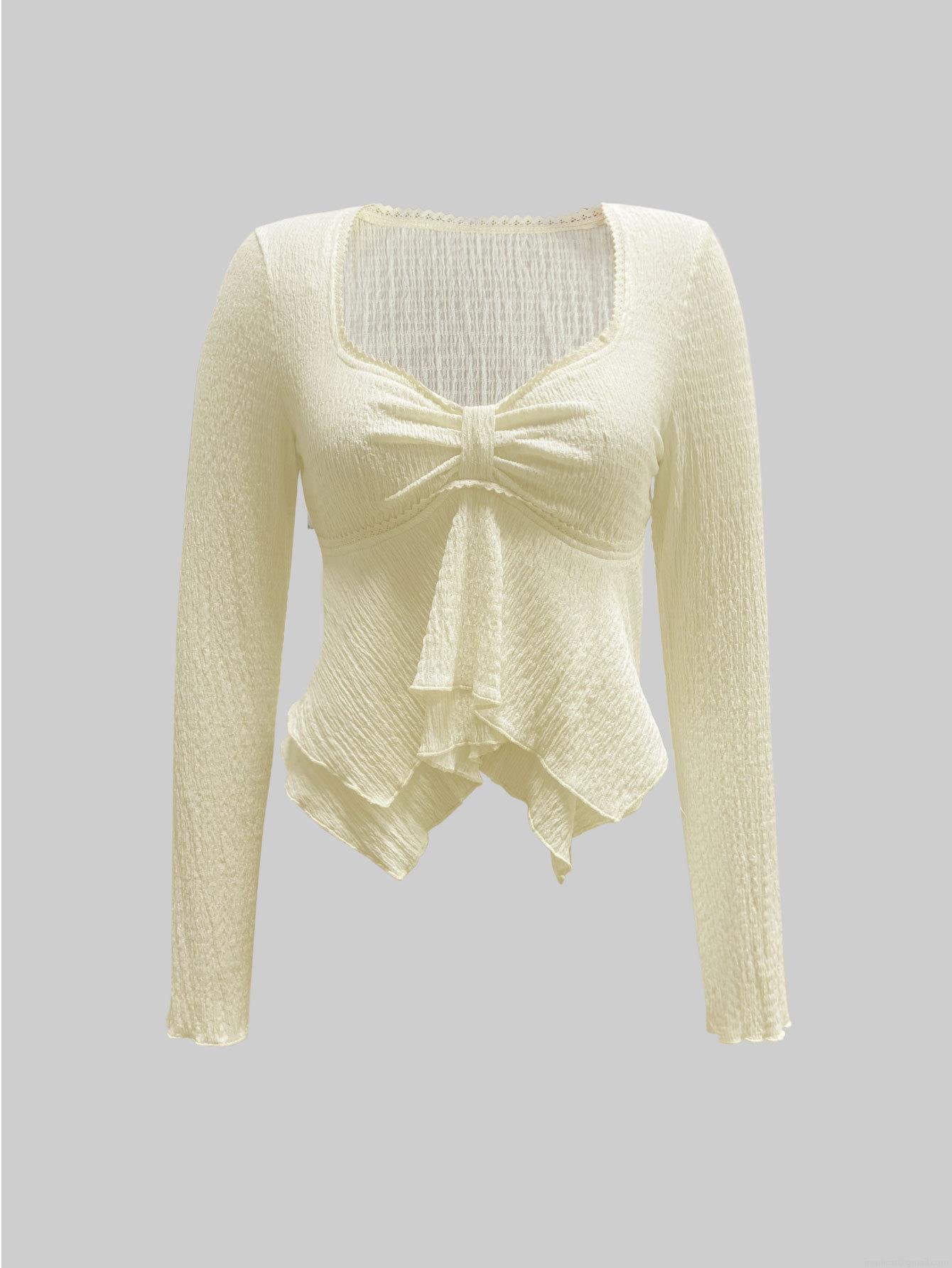 Bow, Pleats, Ruffles, Irregular Hem, Square Collar, Wrinkled Texture