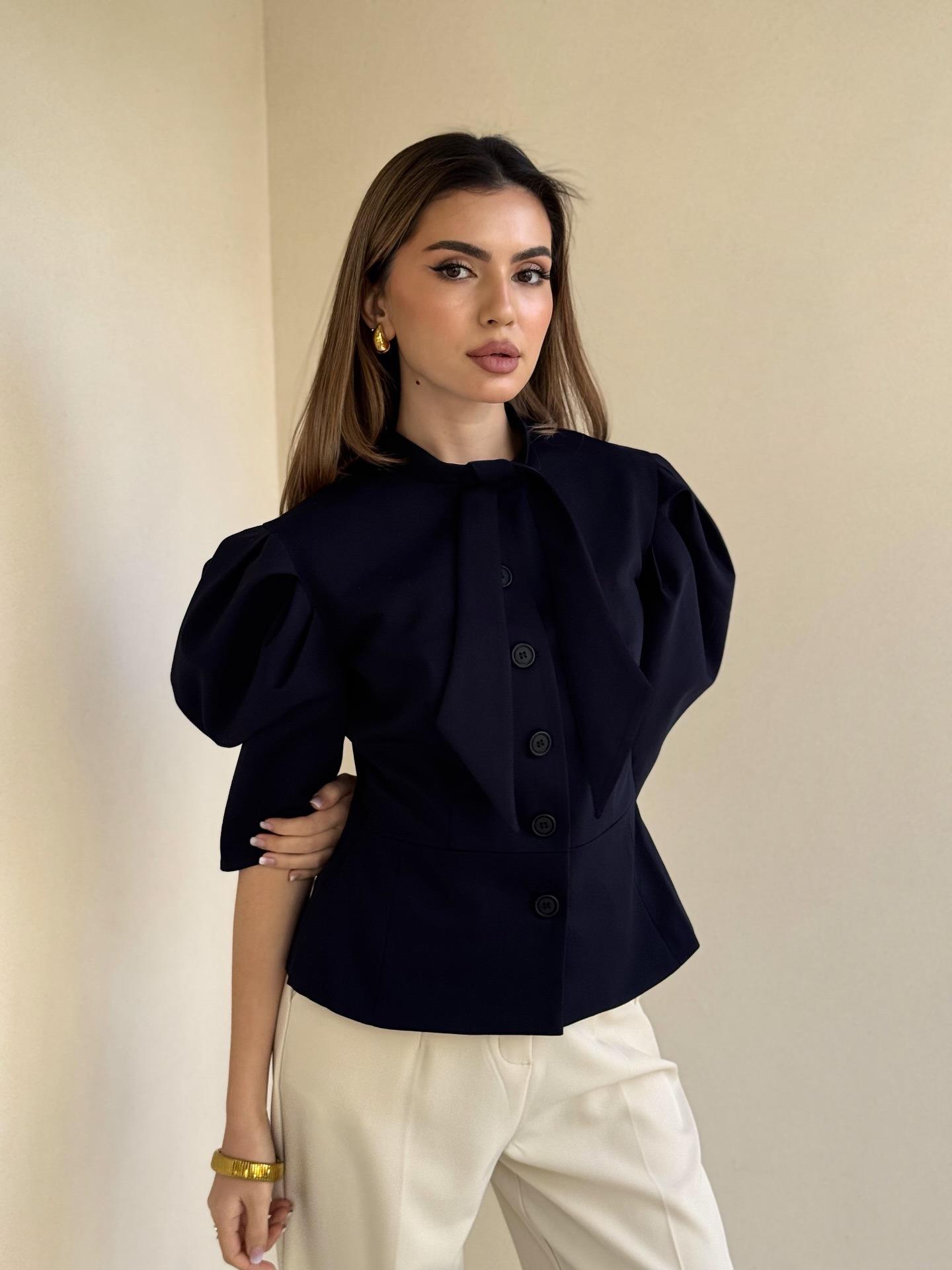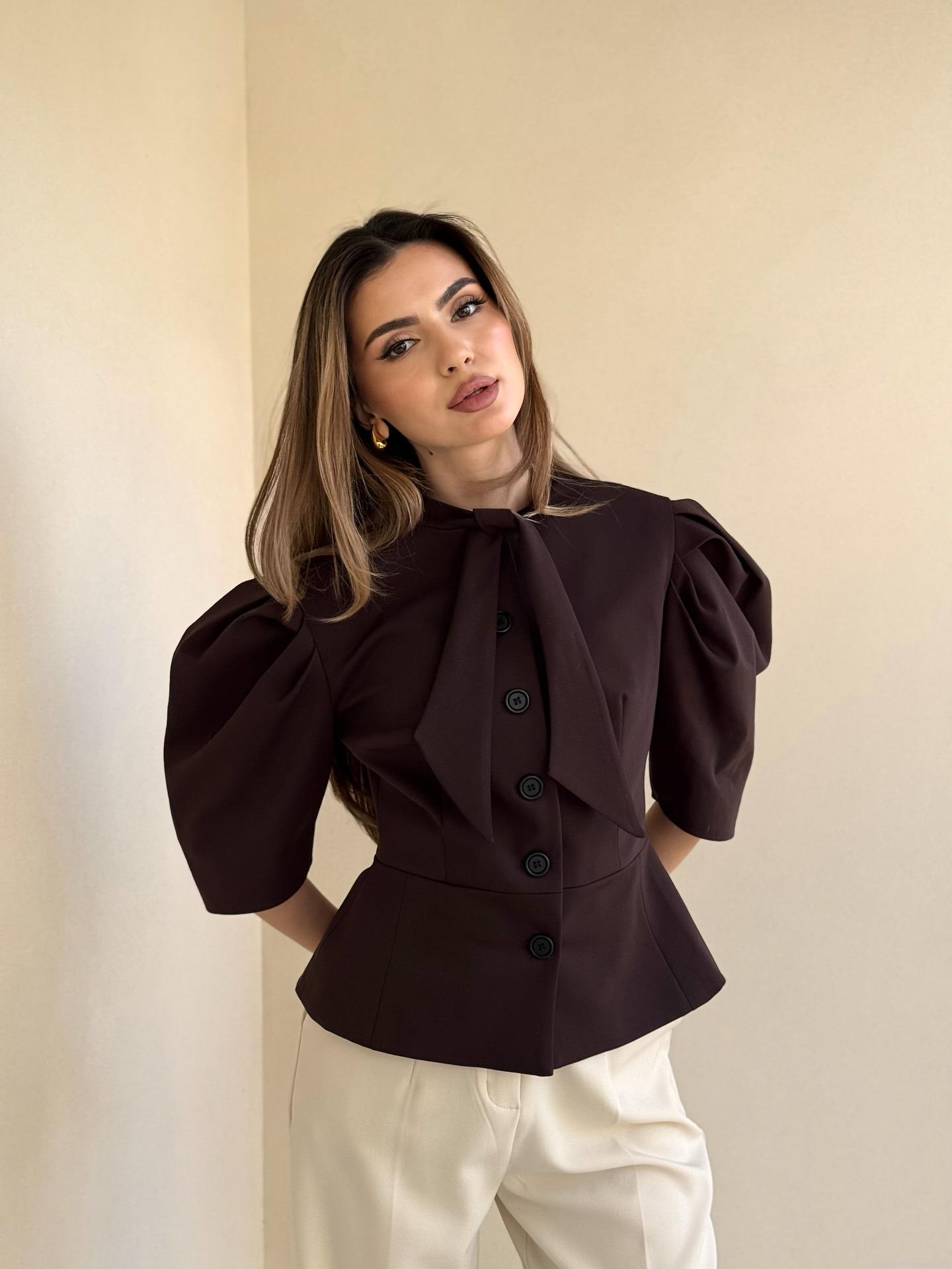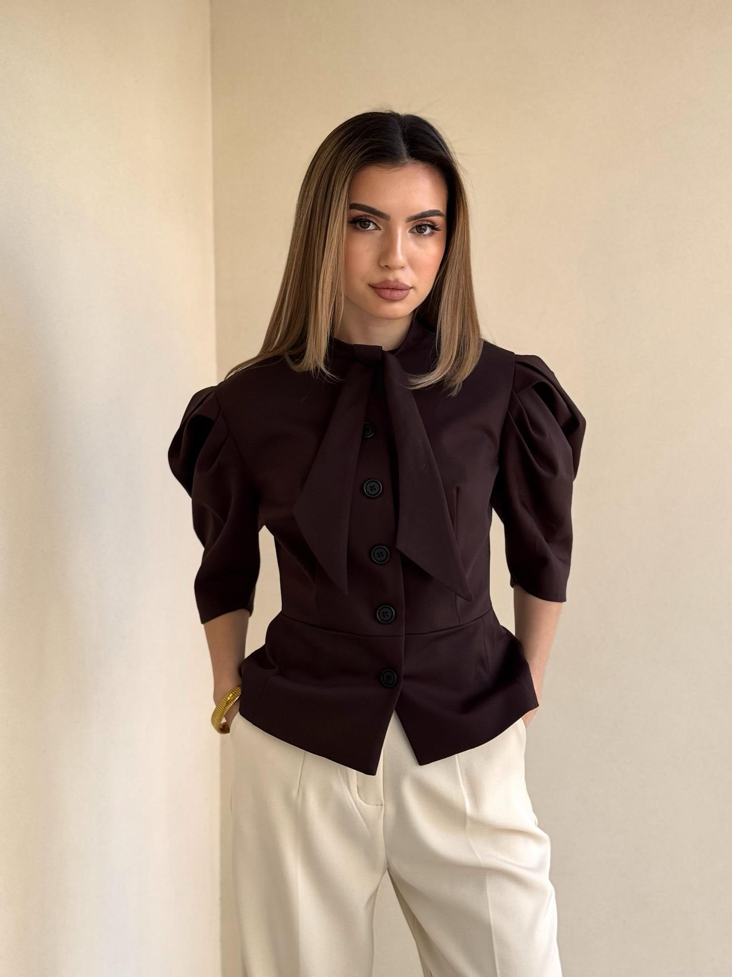 Solid Color, Waist shaping, Puff Sleeves, Single-breasted, Bow Tie, Lantern Sleeves, Design
