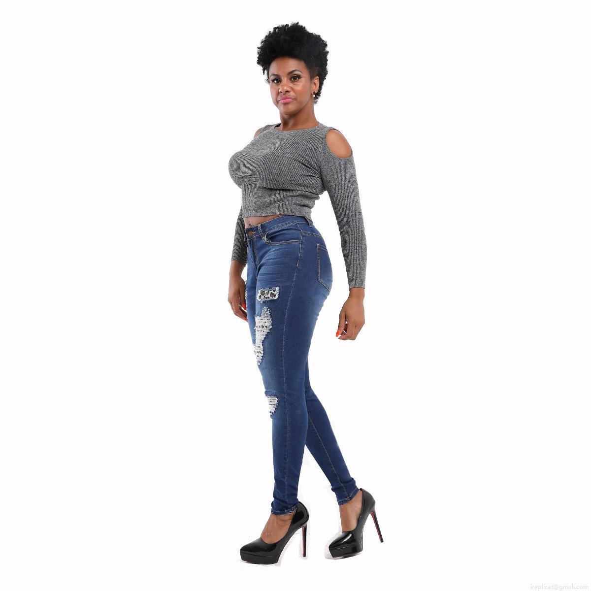 High Waist Ripped Skinny Jeans Women Distressed Leopard Patch Denim Pants Butt Lifting Stretchy Slim Fit Pencil Trousers Streetwear