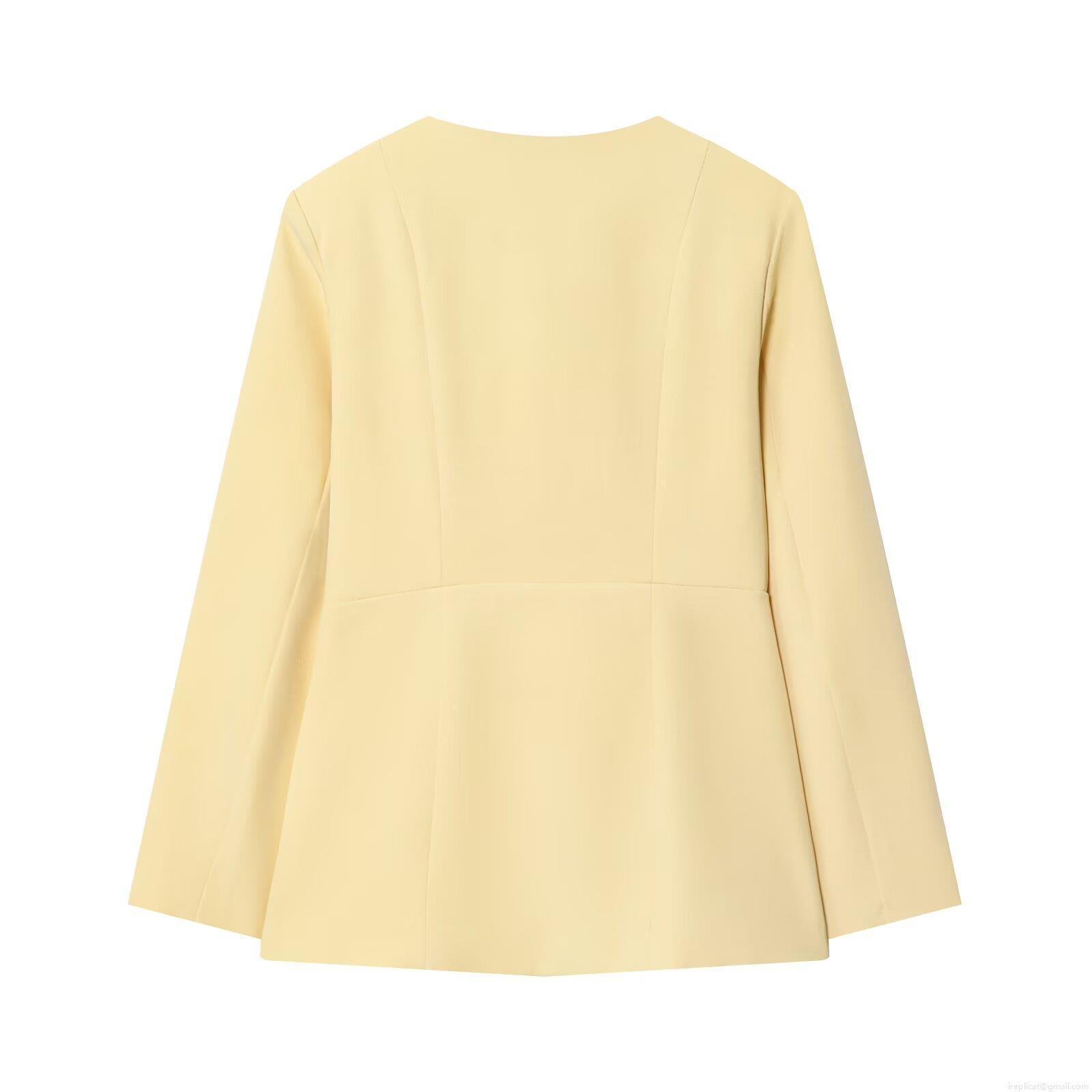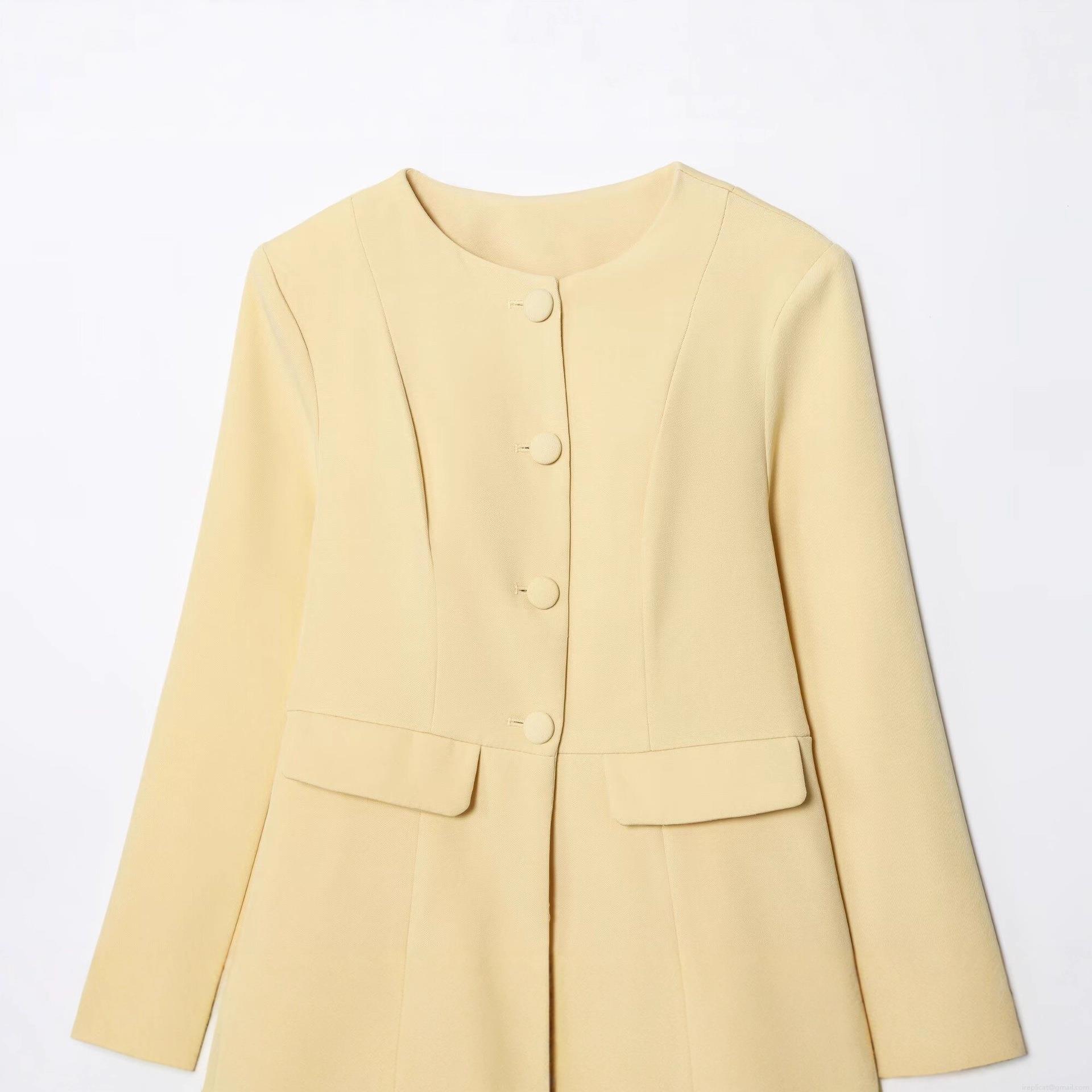 Polyester Women's Slim Fit Blazer Jacket Round Neck Single Breasted Long Sleeve Fall Outerwear Elegant Street Style Light Yellow Office Lady Wear