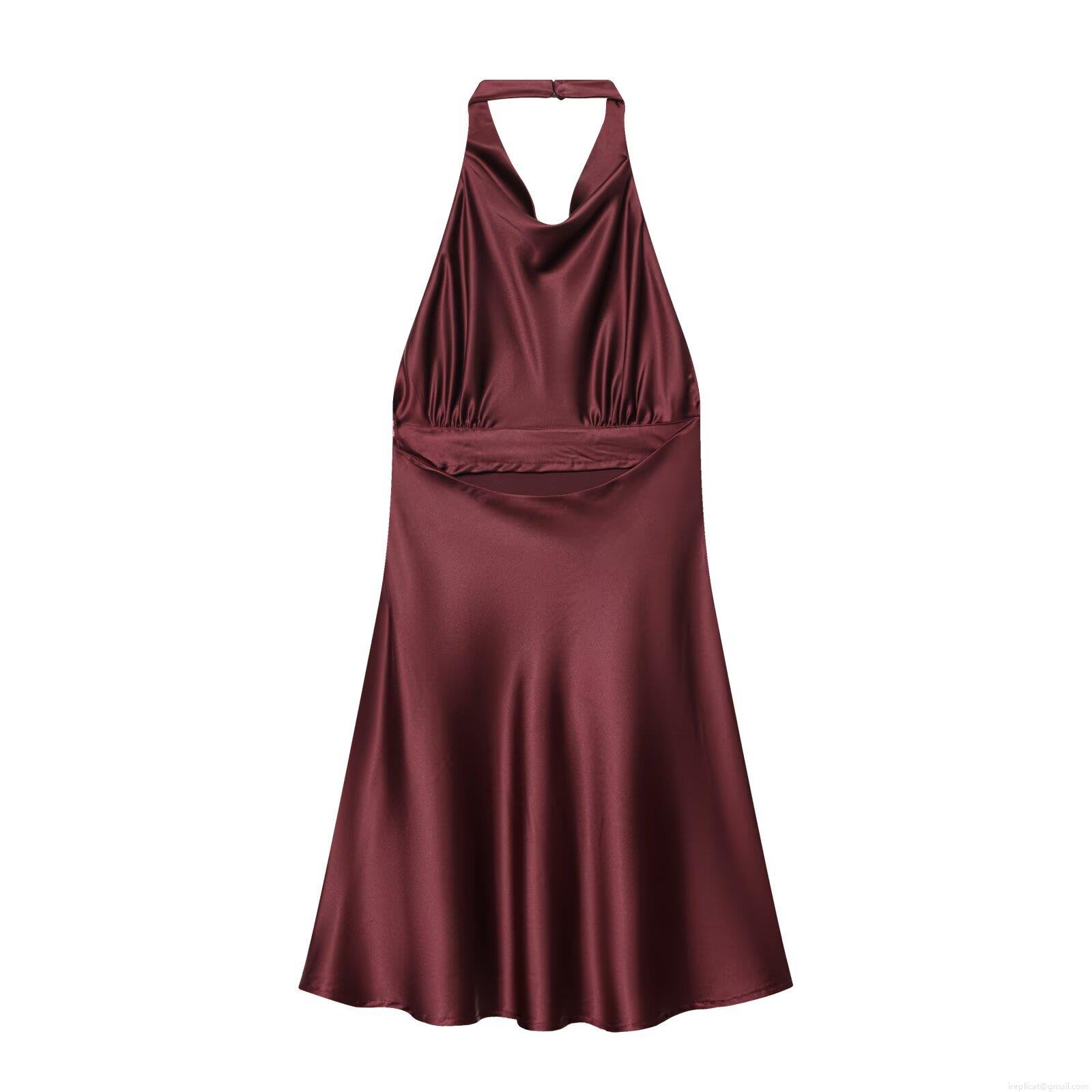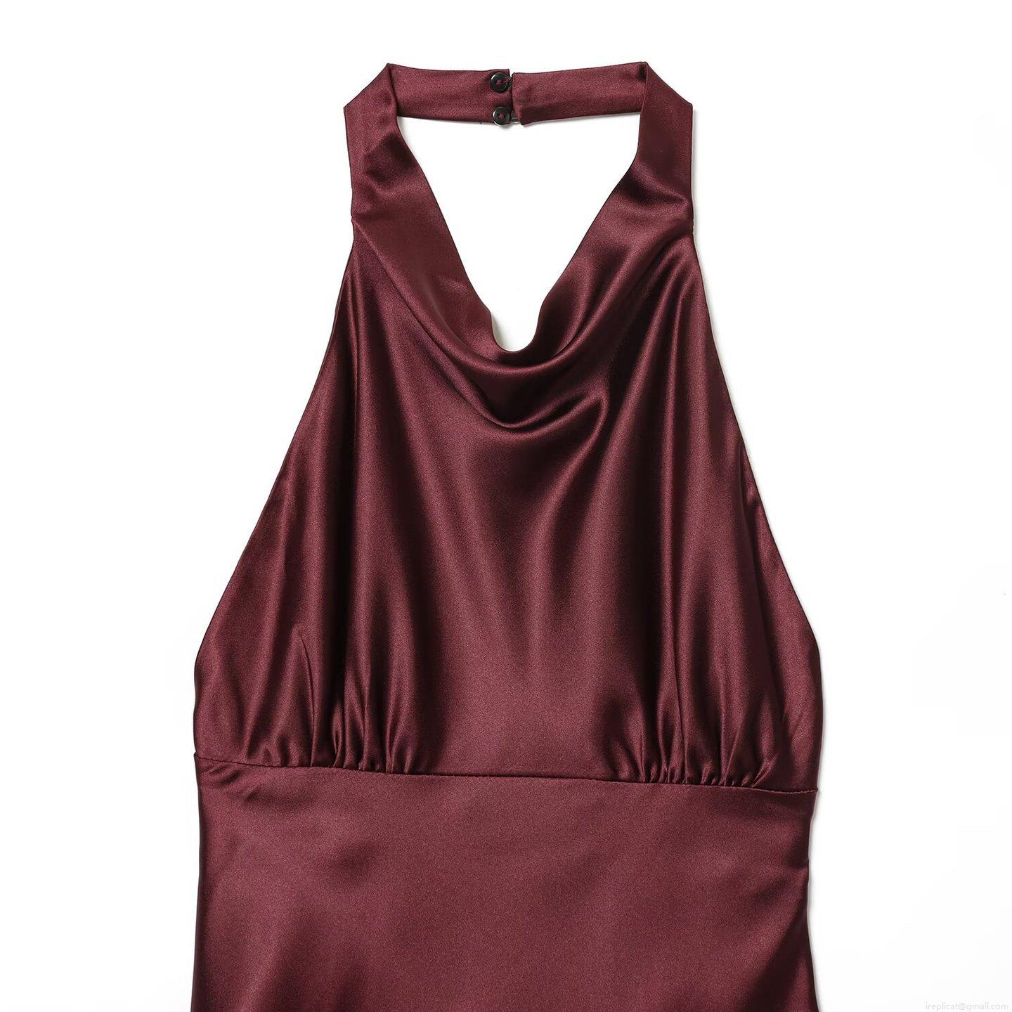 Sexy Backless Halter Dress For Women Satin Silky Texture Sleeveless Midi A-Line Dress Elegant Party Evening Wedding Guest Prom Dresses