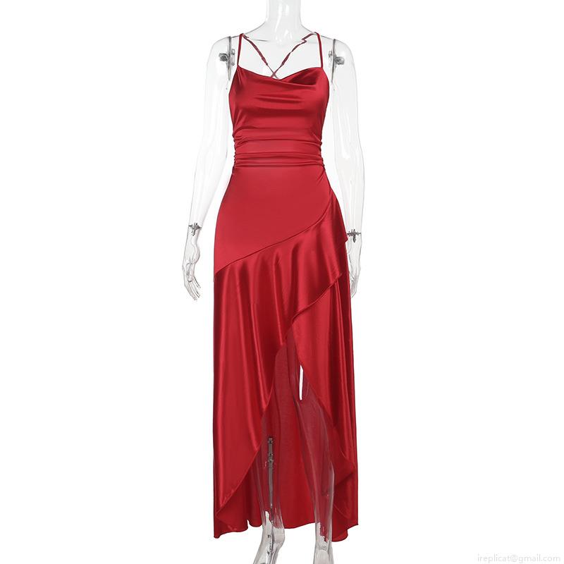 Solid Color, Pleats, Suspenders, Backless, Forked