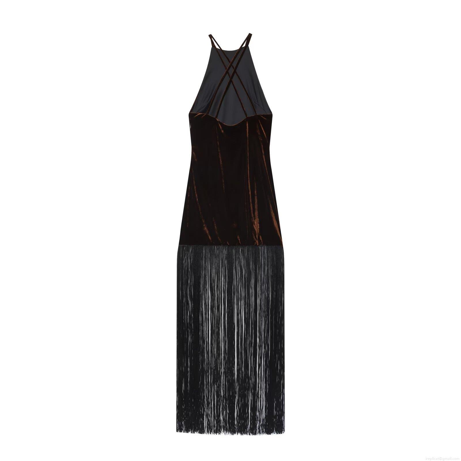 Sexy Halter Backless Velvet Maxi Dress with Long Tassel Fringe Evening Party Bodycon Dress for Women Luxury Clubwear Velvet Dress
