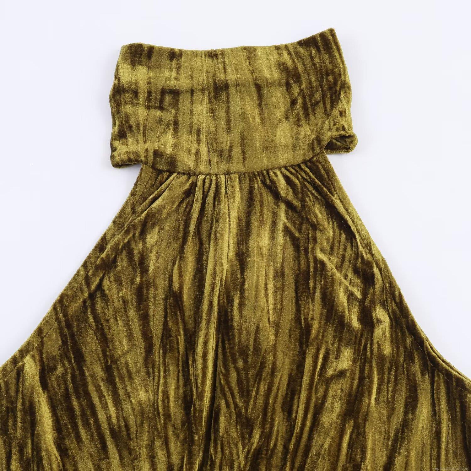 Sexy Olive Green Velvet Halter Neck Cutout Maxi Dress With Rhinestone Buckle Women Elegant Pleated Bodycon Evening Party Dress
