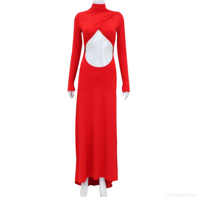Sexy Red Hollow Out Long Sleeve Evening Gown Floor Length High Neck Bodycon Party Dress For Women Special Occasion Wedding Night Out Maxi Dress
