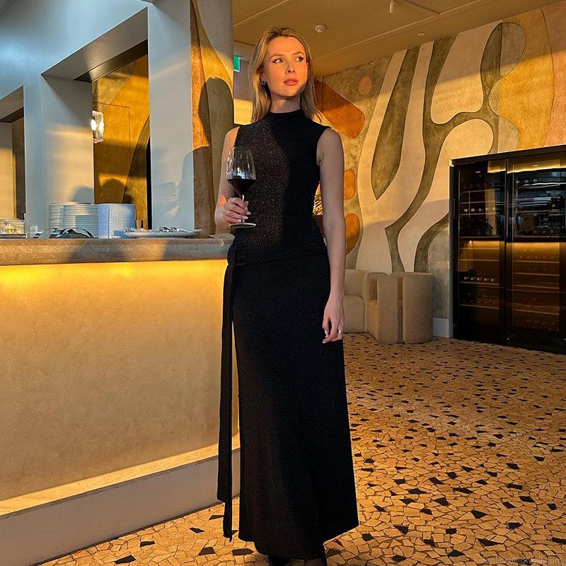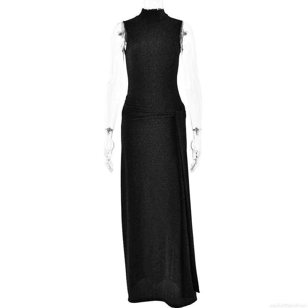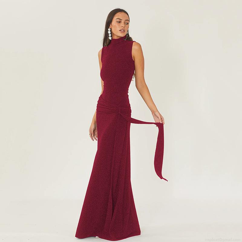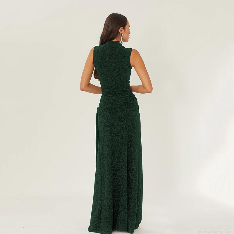 Sexy Sleeveless Round Neck Glitter Silk Fishtail Maxi Dress Ruched Slim Fit Evening Party Long Dress For Women Polyester Glitter Fabric Occasion Dress