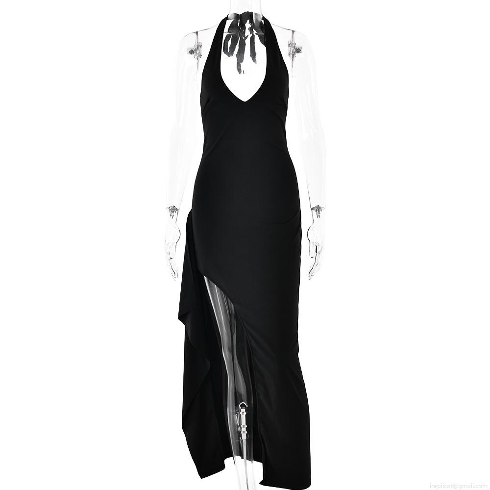 Sexy V Neck Halter Backless Long Dress Polyester Milk Silk High Slit Evening Gown For Women Party Wedding Clubwear Slim Fit Solid Color Maxi Dress