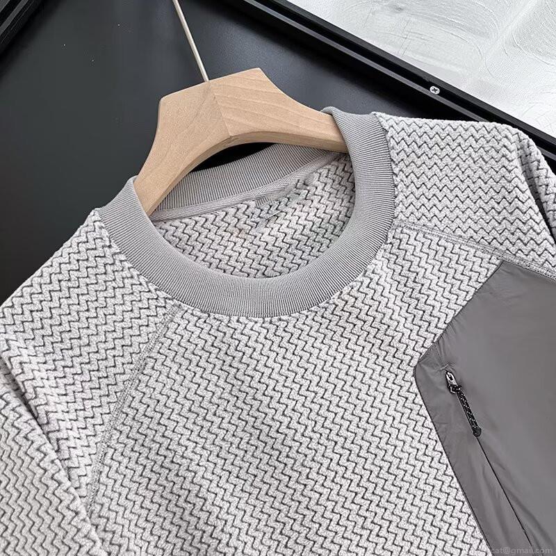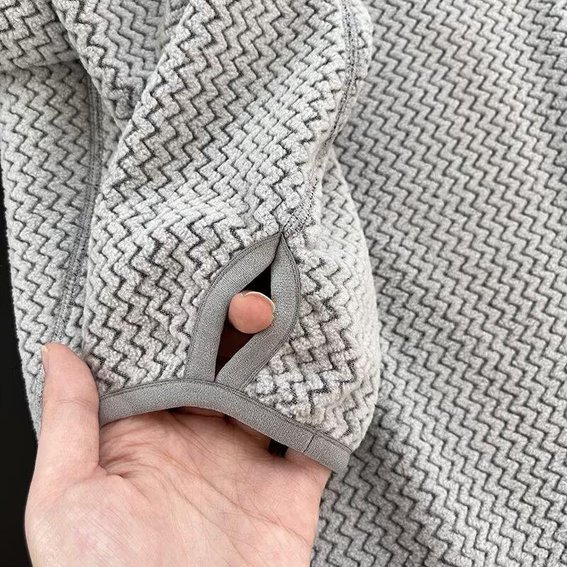 Unisex Outdoor Fleece T-Shirt Loose Crewneck Pullover With Water Ripple Texture Casual Long Sleeve Top With Zipper Pocket And Thumbhole Cuffs