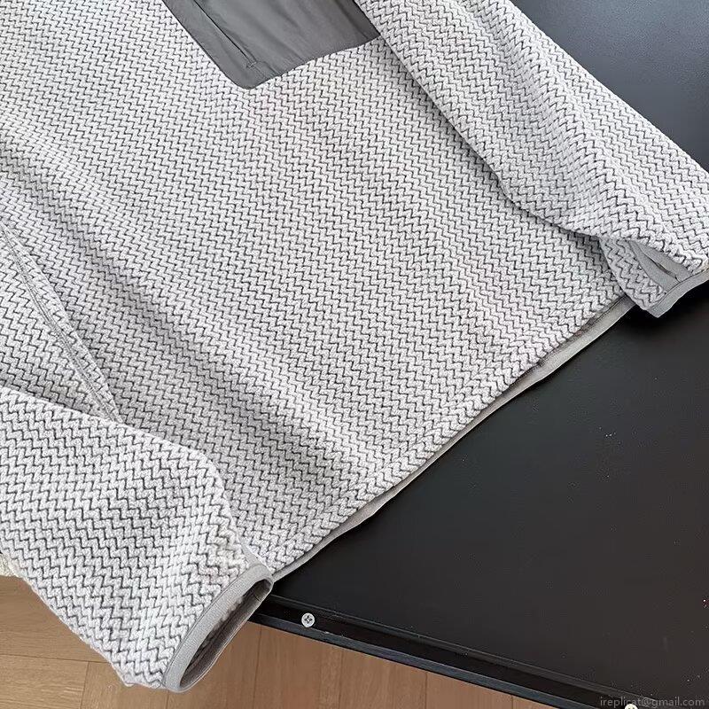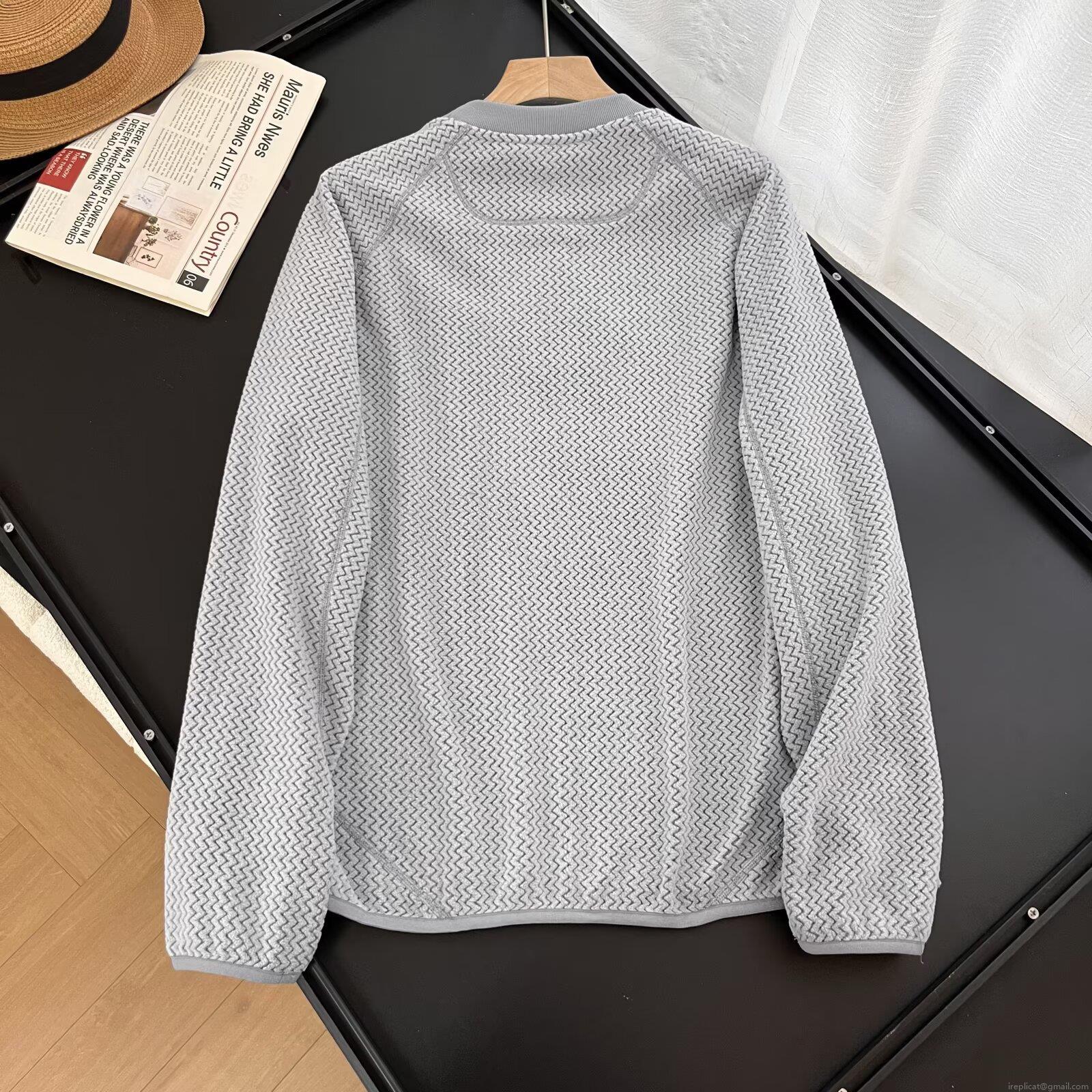 Solid Color, Ripple, Zippered Patch, Raglan Sleeves, Water Ripple Texture, Cuff Finger Seam Design