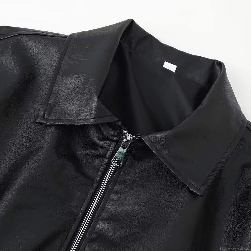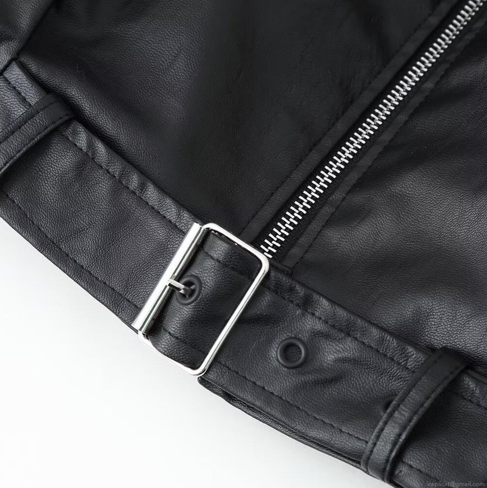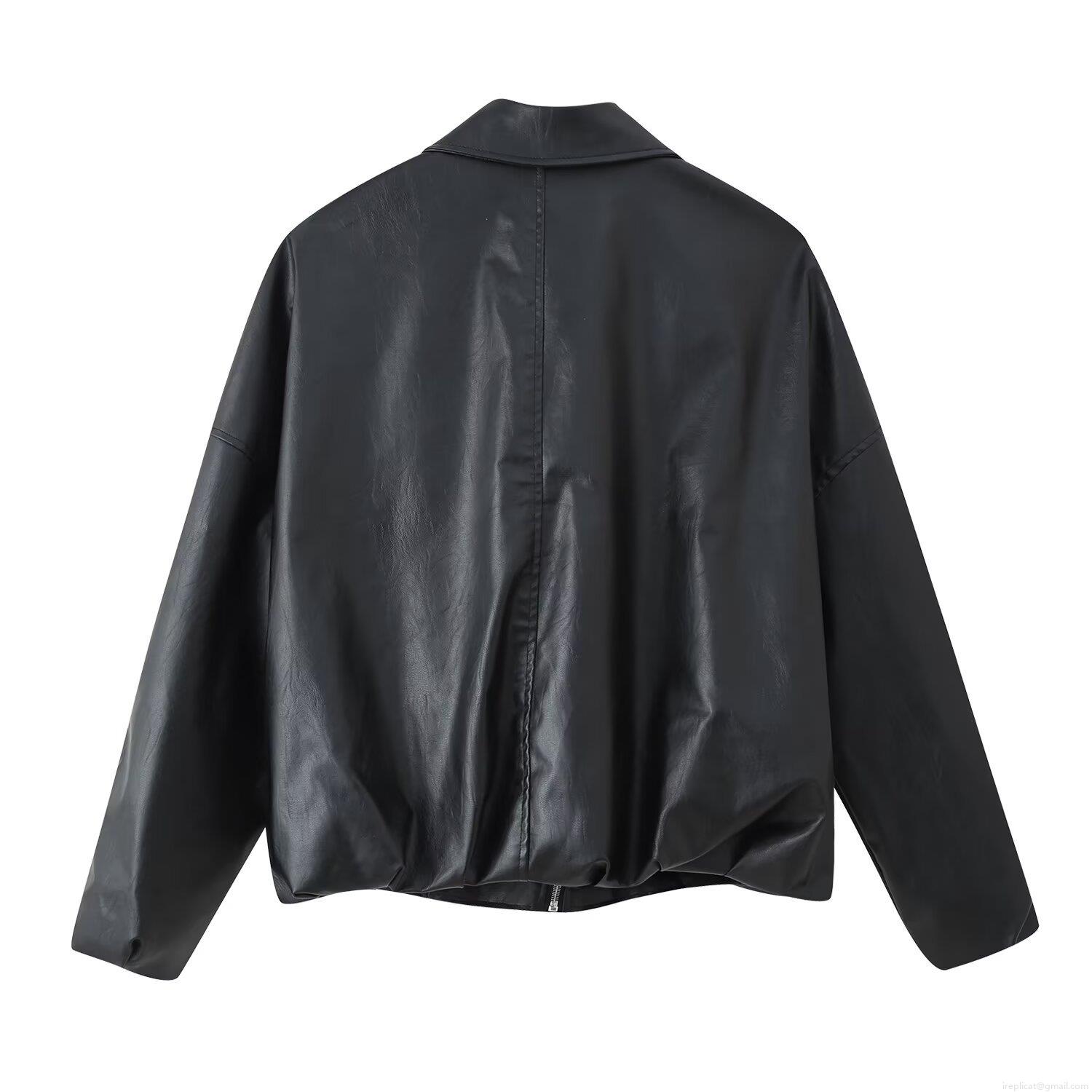 Vintage Faux PU Leather Jacket For Women Long Sleeve Lapel Collar Zip Up Biker Coat With Belt Oversized Streetwear Autumn Outerwear