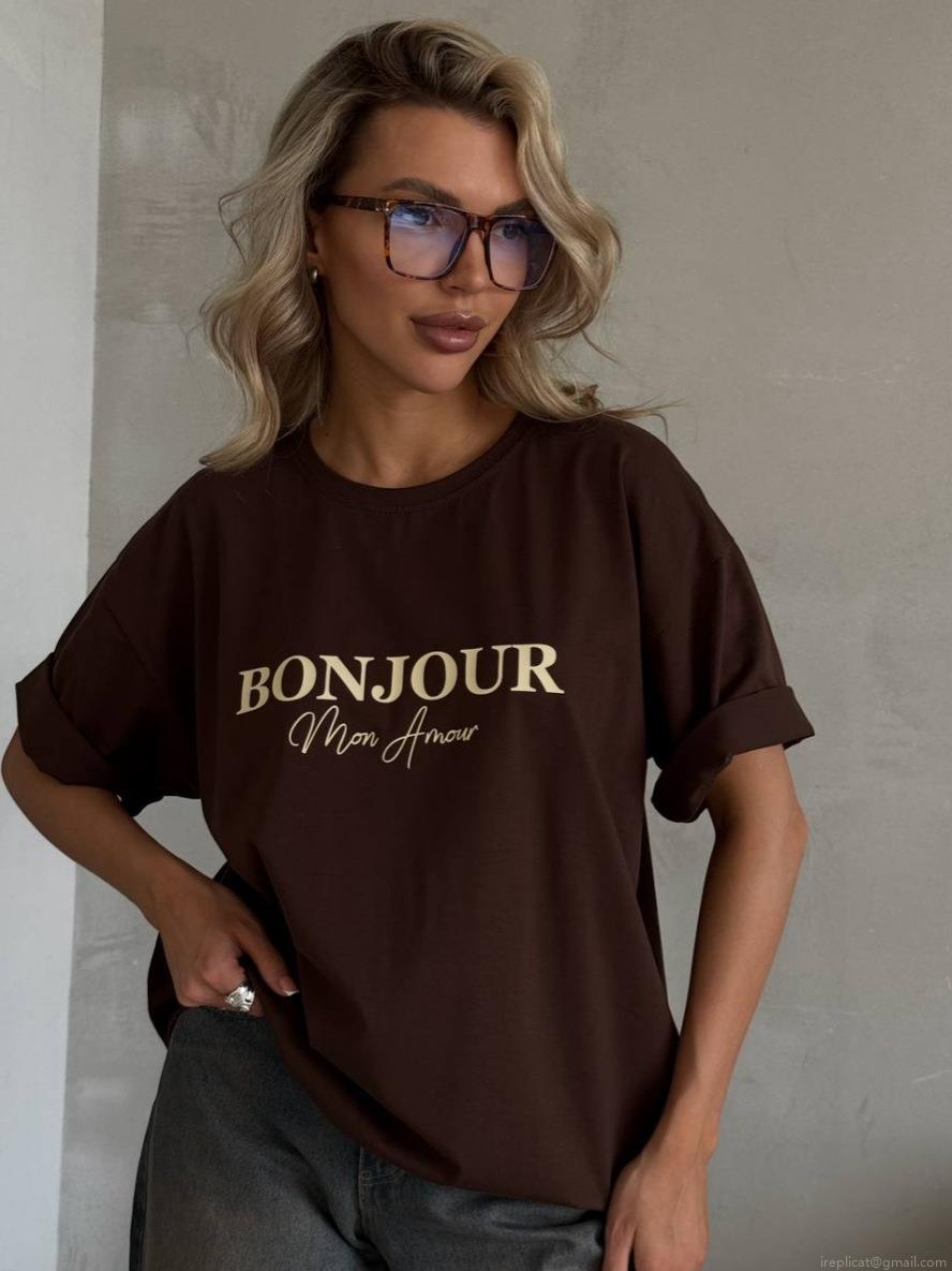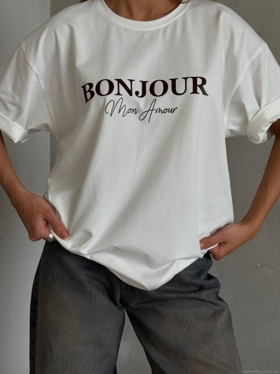 Women 100% Cotton T-Shirt Loose Fit Round Neck Short Sleeve Letter Print Casual Summer Top BONJOUR Mon Amour Breathable Soft Basic Tee For Daily Wear