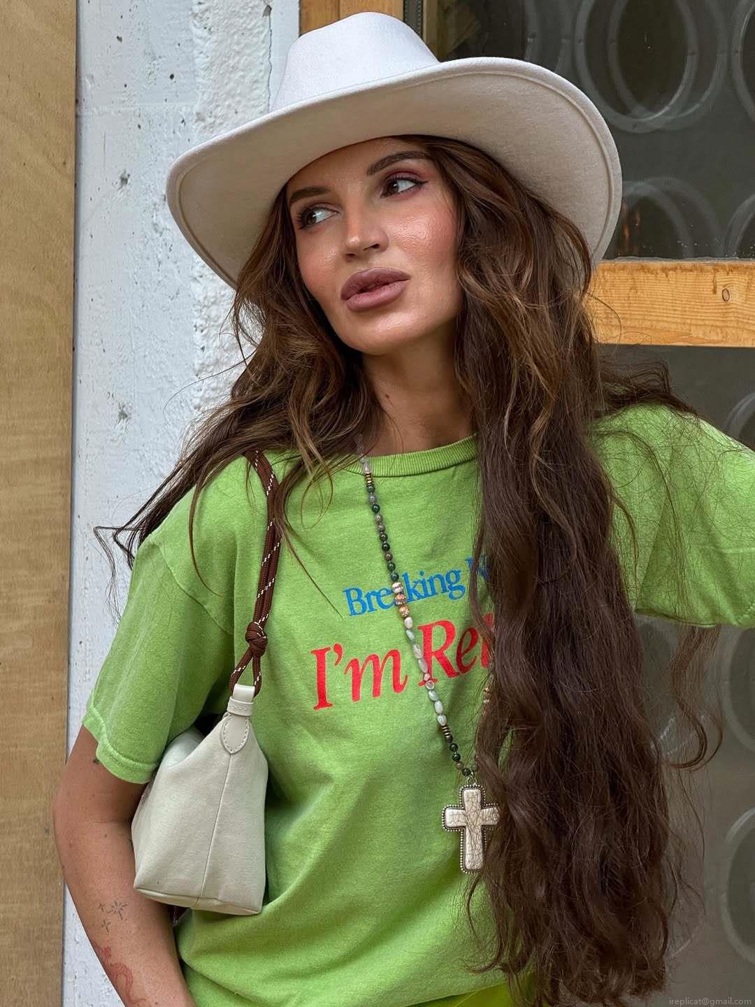 Women's Oversized 100% Cotton T-Shirt With Feather Patchwork Cuffs...