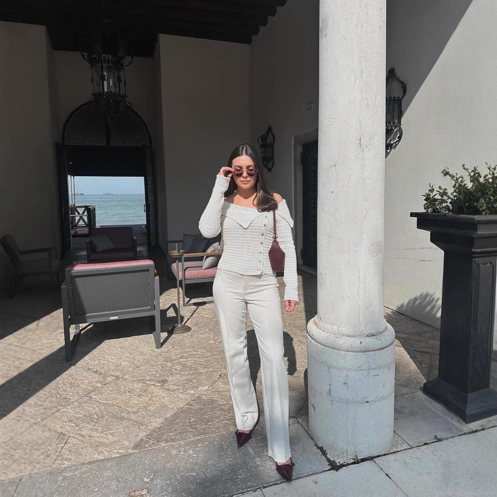 Solid Color, Off-shoulder, Asymmetrical Collar, Asymmetrical Design, Single-breasted Side