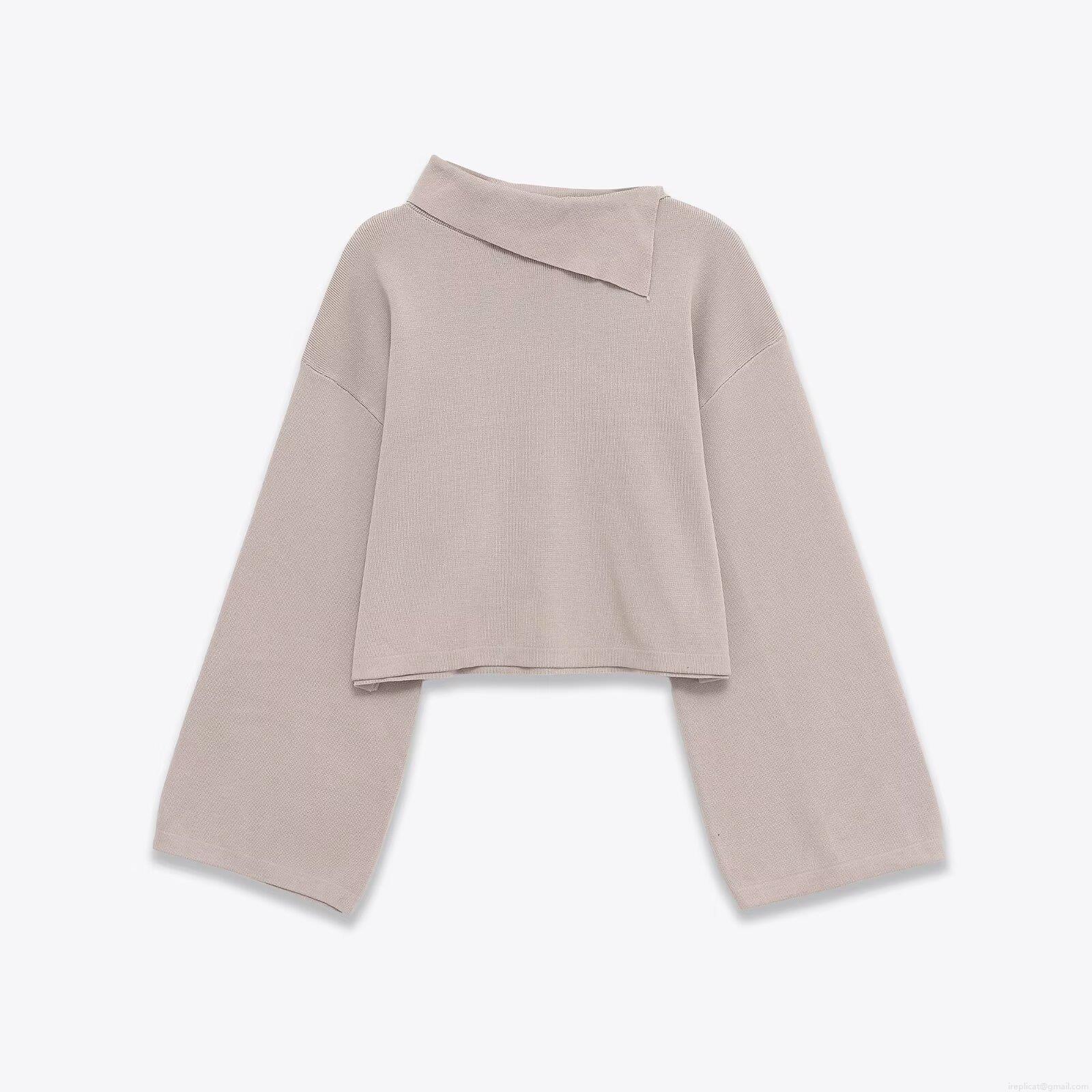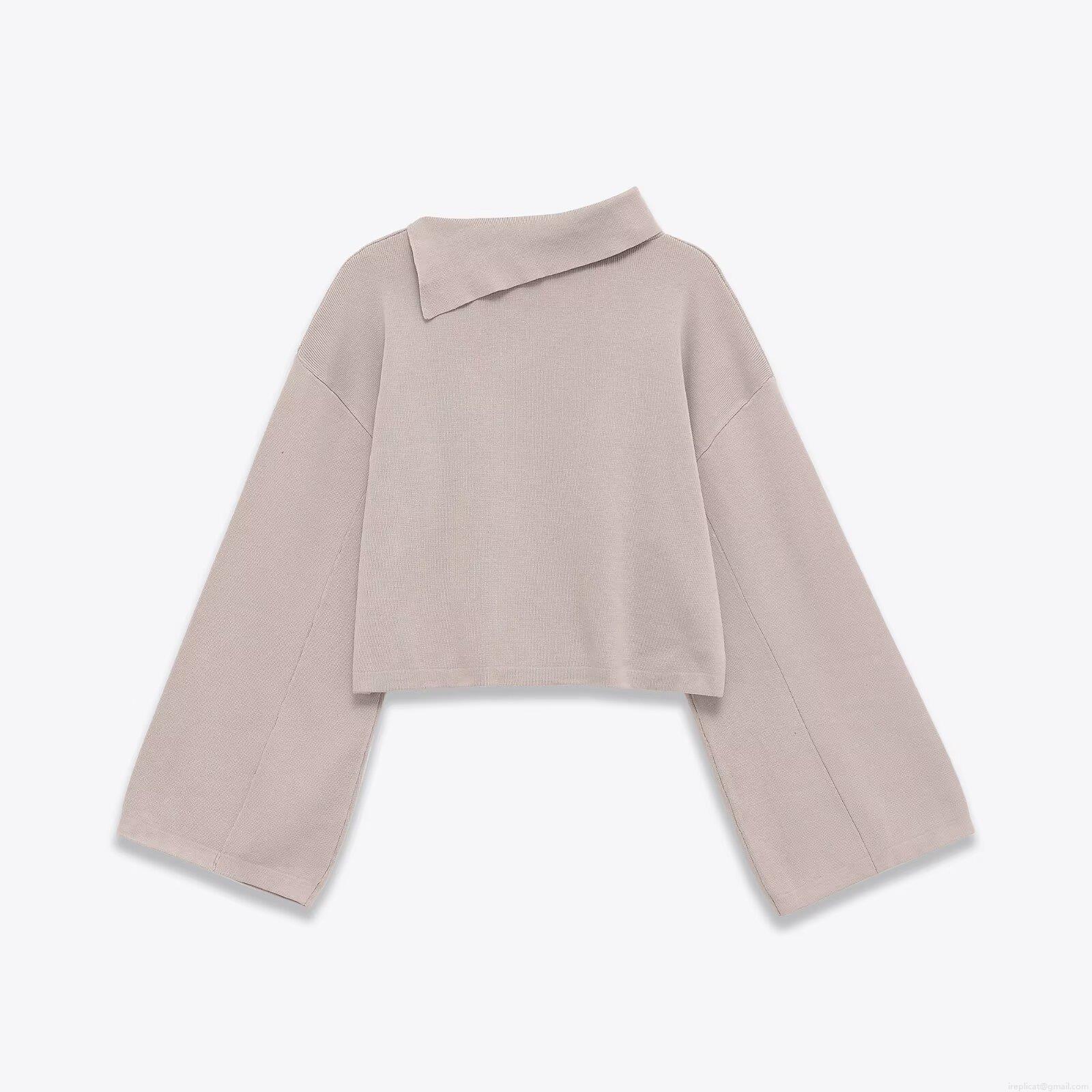 Women Asymmetric Neck Polyester Knit Sweater Cropped Wide Sleeve Pullover Streetwear Autumn Winter Jumper Top