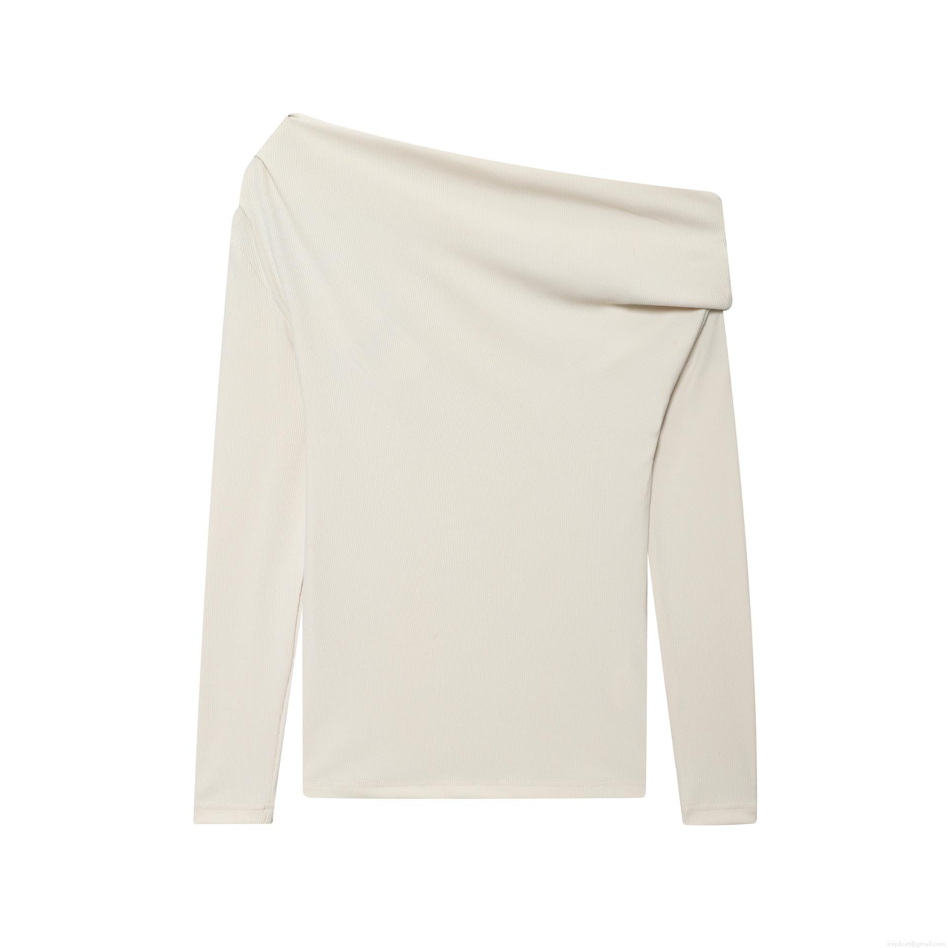 Solid Color, Off-shoulder, Asymmetrical Collar, Ribbed Knit, Asymmetrical Design, Ribbed Texture, Longitudinal Thread Texture