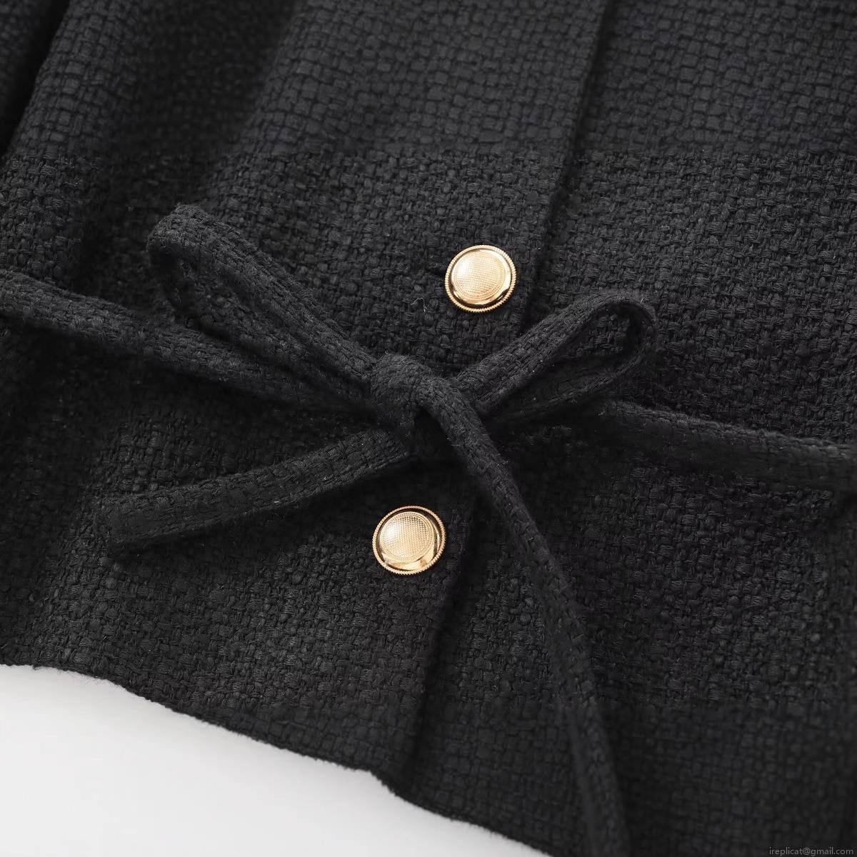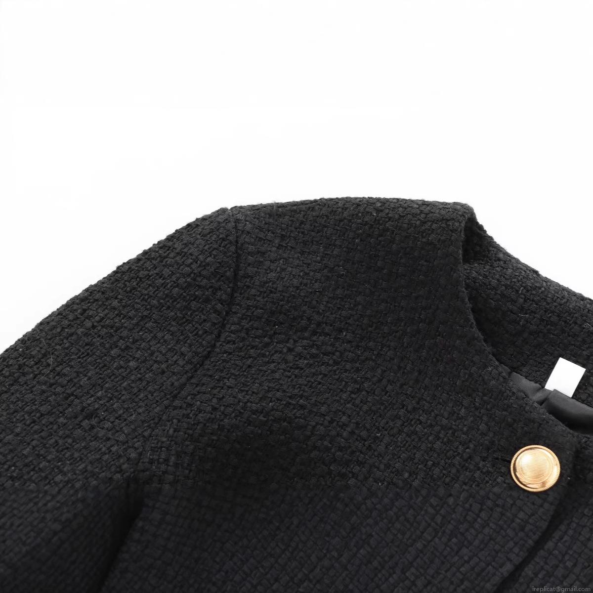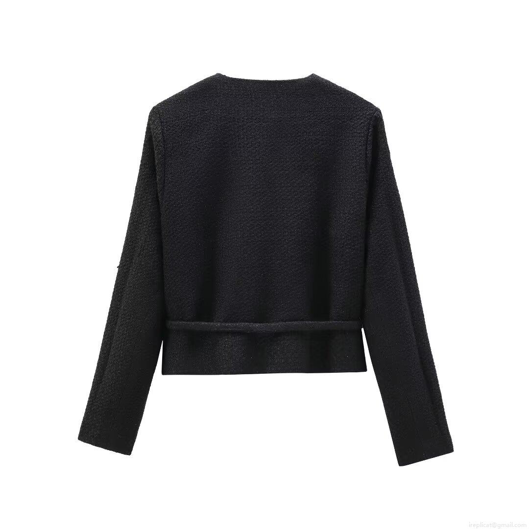 Women Black Tweed Jacket Elegant Short Coat With Belt Gold Buttons Vintage Slim Fit Chanel Style Blazer For Office Lady Party Outerwear