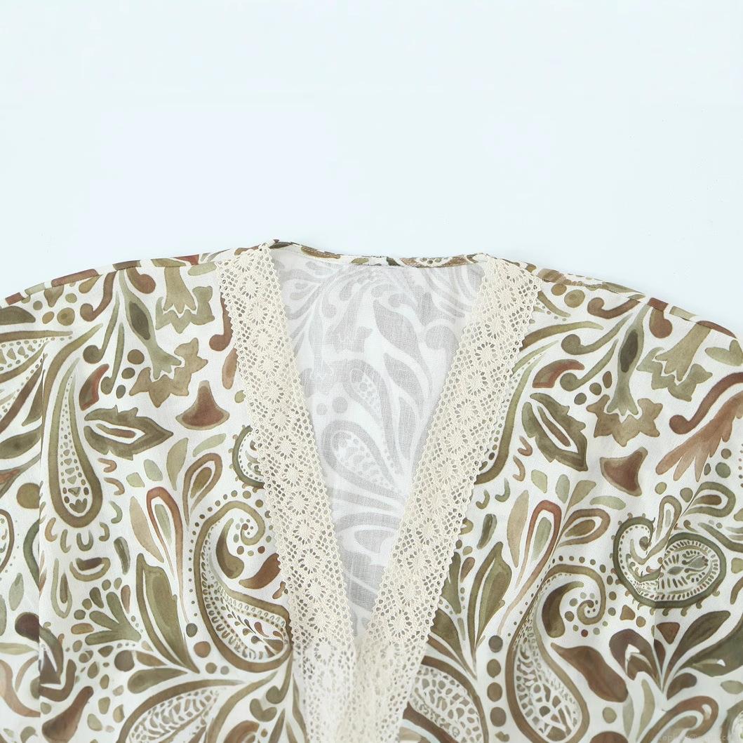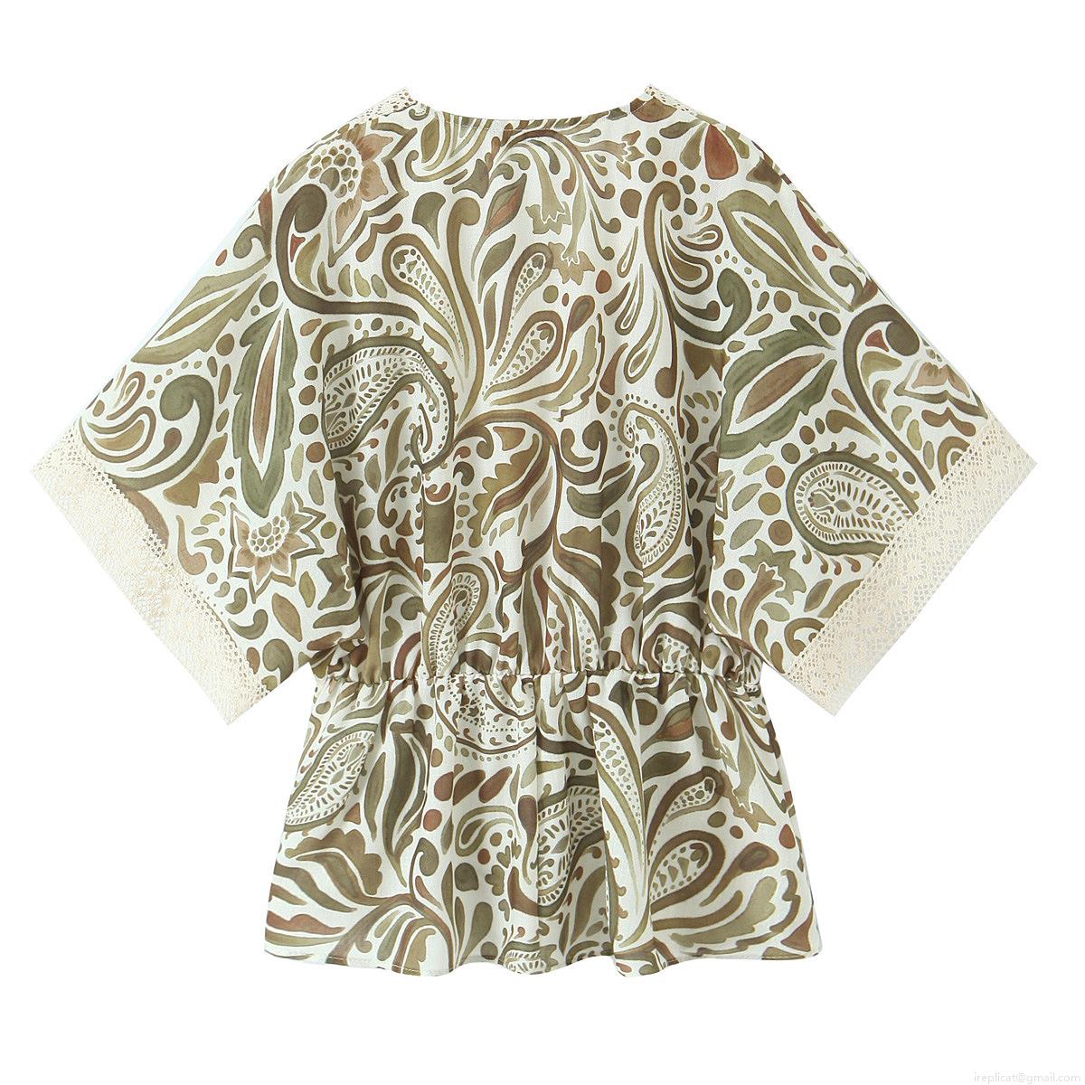 Women Bohemia Paisley Print Top Polyester Lace Trim V Neck Loose Fit Half Sleeve Breathable Casual Daily Beach Vacation Vintage Ethnic Chic For Lady