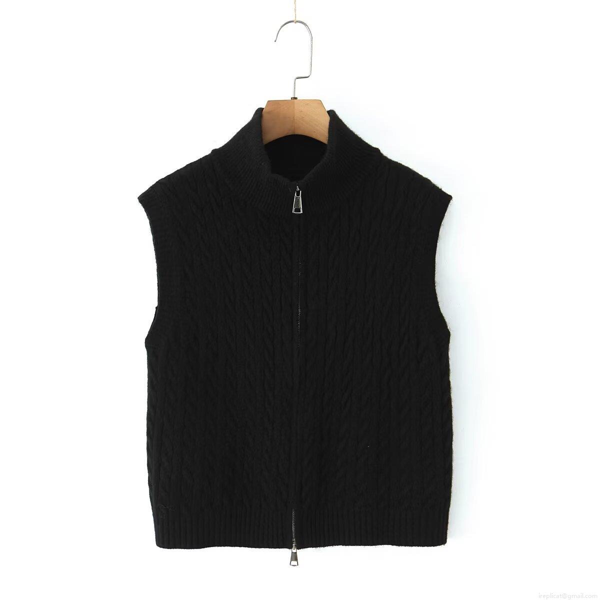 Women Cable Knit Vest Zipper Stand Collar Sleeveless Polyester Knitted Sweater Top Streetwear Casual Autumn Winter Outerwear