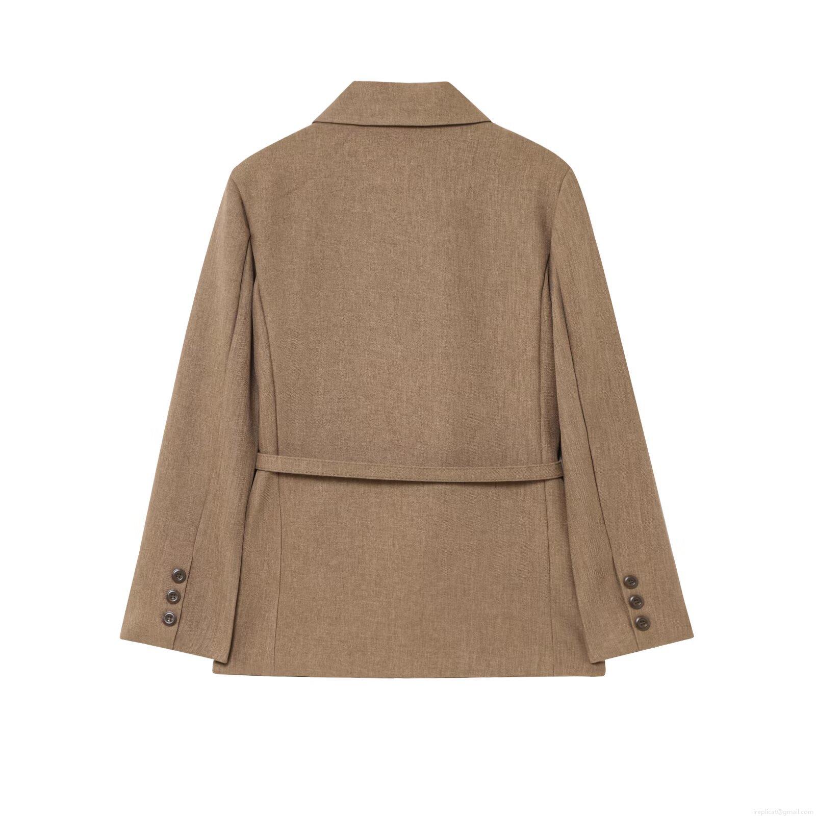 Solid Color, Belt, Waist-cinching Design, Splicing Process, Suit Collar