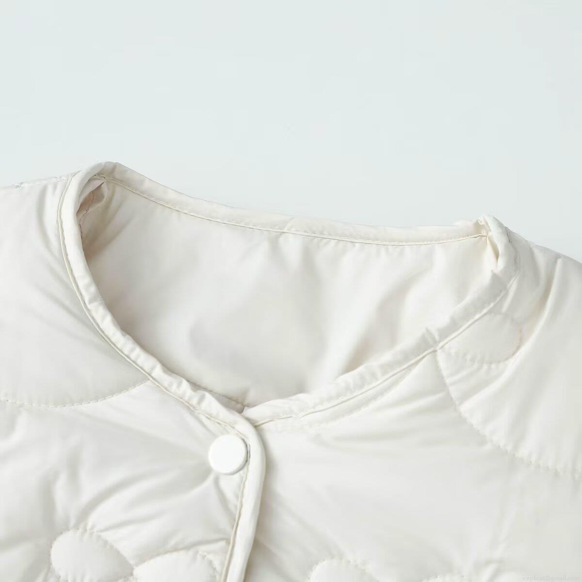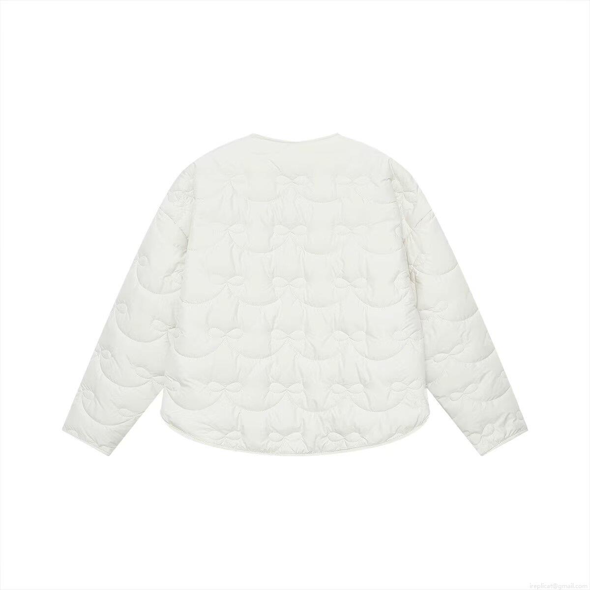 Women Casual Bow Quilted Short Cotton Jacket Lightweight Round Neck Single Breasted Padded Coat Warm Fall Winter Outwear For Women