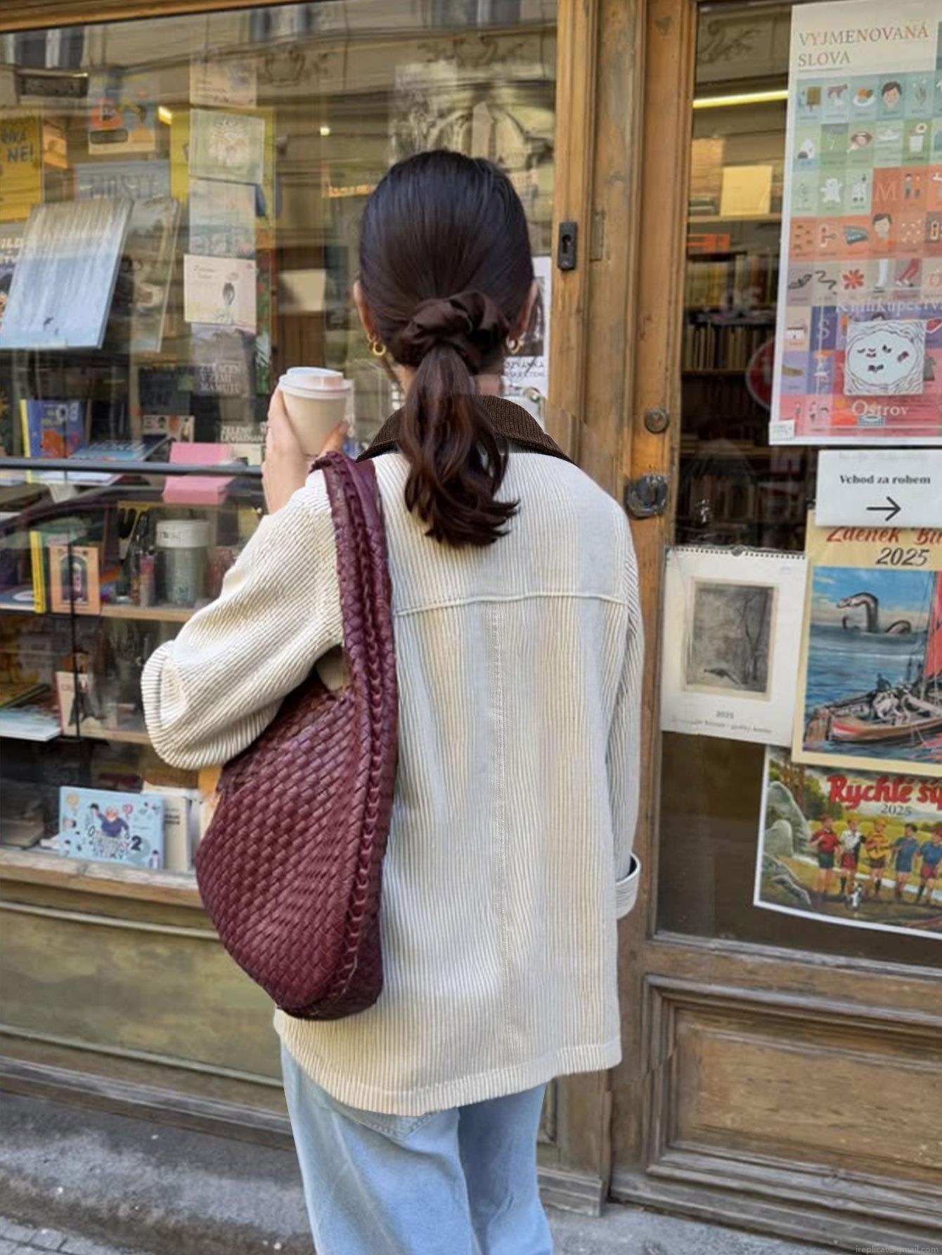 Women Corduroy Jacket Contrast Flip Collar Single Breasted Oversized Long Sleeve Outerwear With Pockets Solid Color Casual Commuter Retro Coat