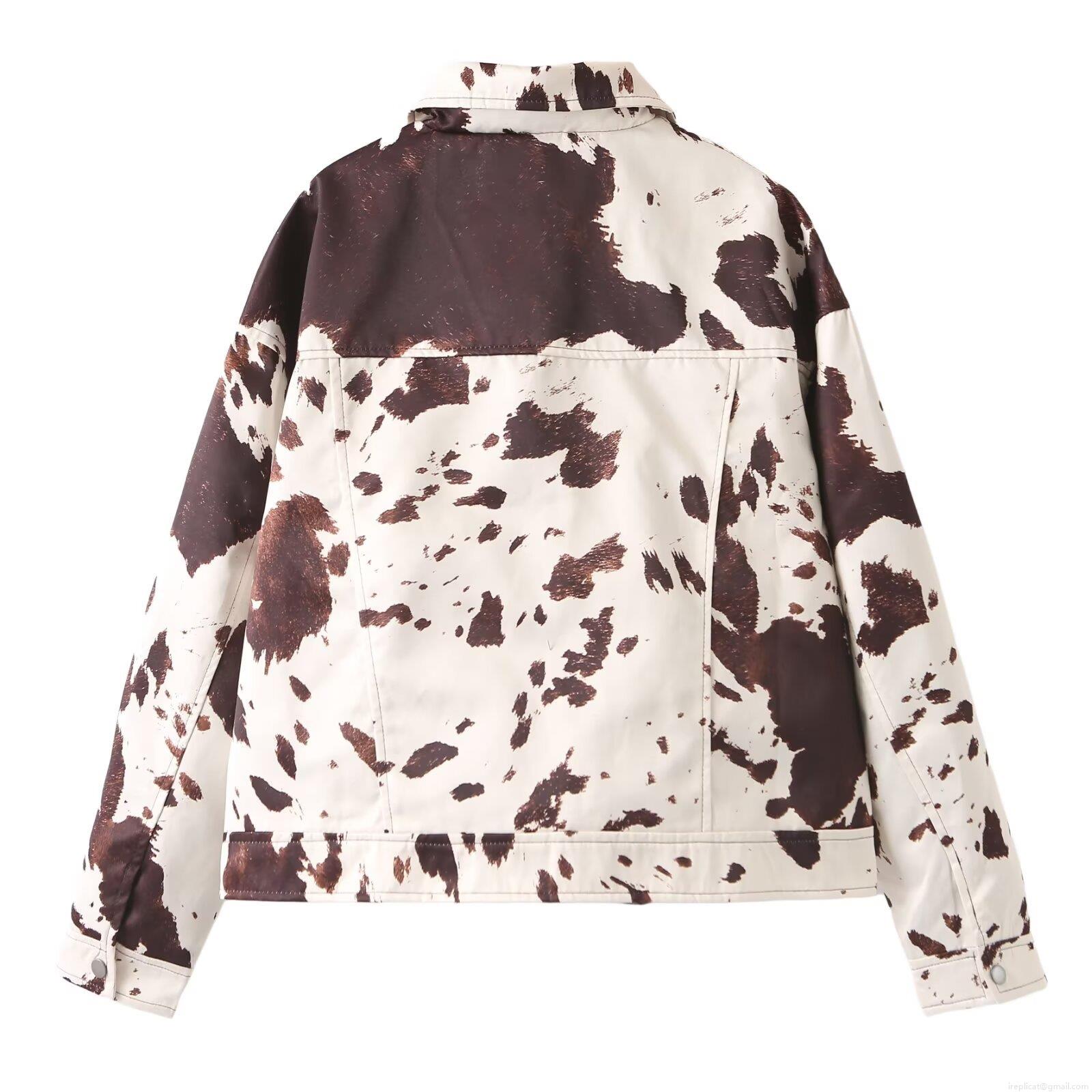 Women Cow Print Long Sleeve Jacket Polyester Lapel Button Down Coat With Pockets Western Streetwear Style Outerwear Fall Autumn Fashion