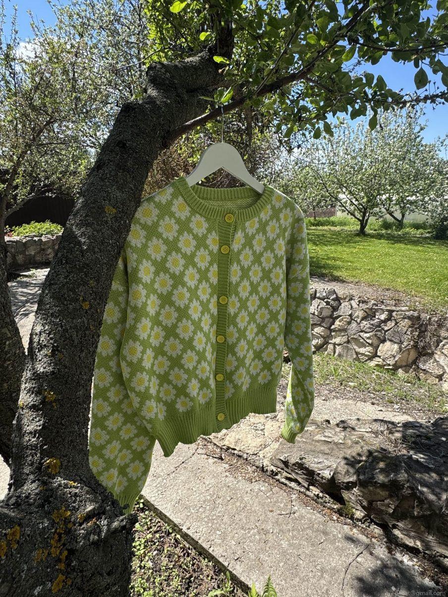 Women Daisy Floral Jacquard Knit Cardigan Loose Round Neck Long Sleeve Button Up Sweater Casual Autumn Winter Outerwear Jacket