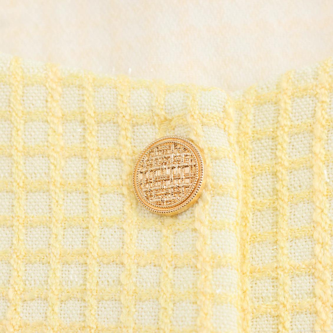 Women Elegant Cheese Yellow Tweed Short Jacket Round Neck Gold Button Decor Long Sleeve Pocket Outerwear Autumn Winter Lady Top