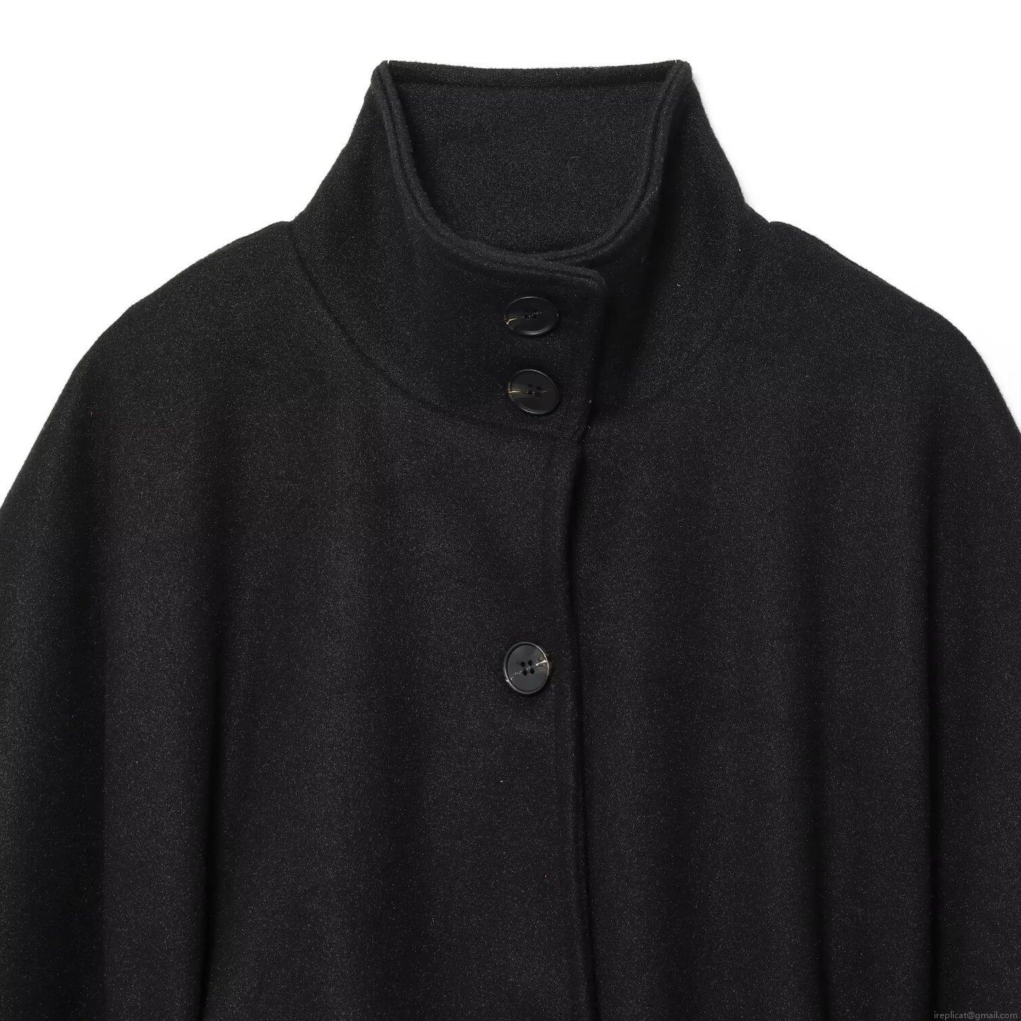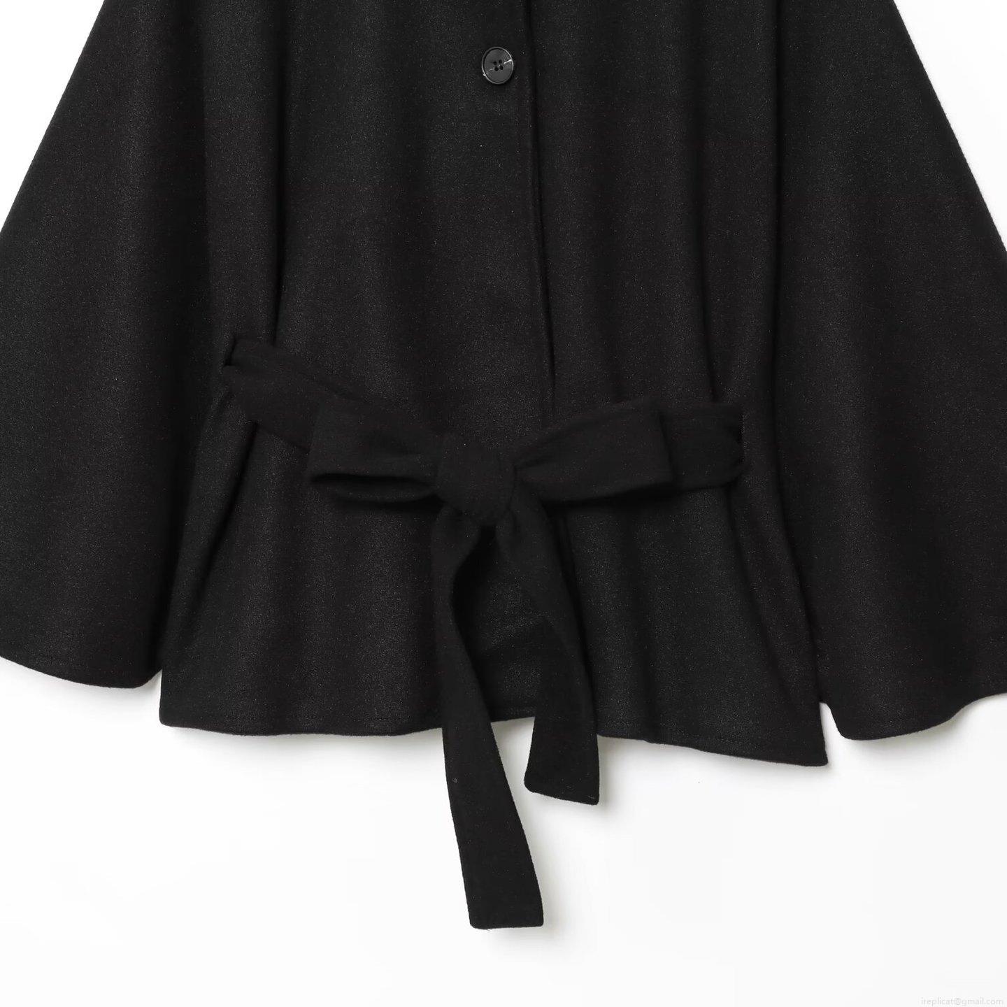 Women Elegant High Neck Belted Cape Coat Fashion Solid Color Stand Collar Woolen Poncho Jacket With Button For Office Casual Party Autumn Winter