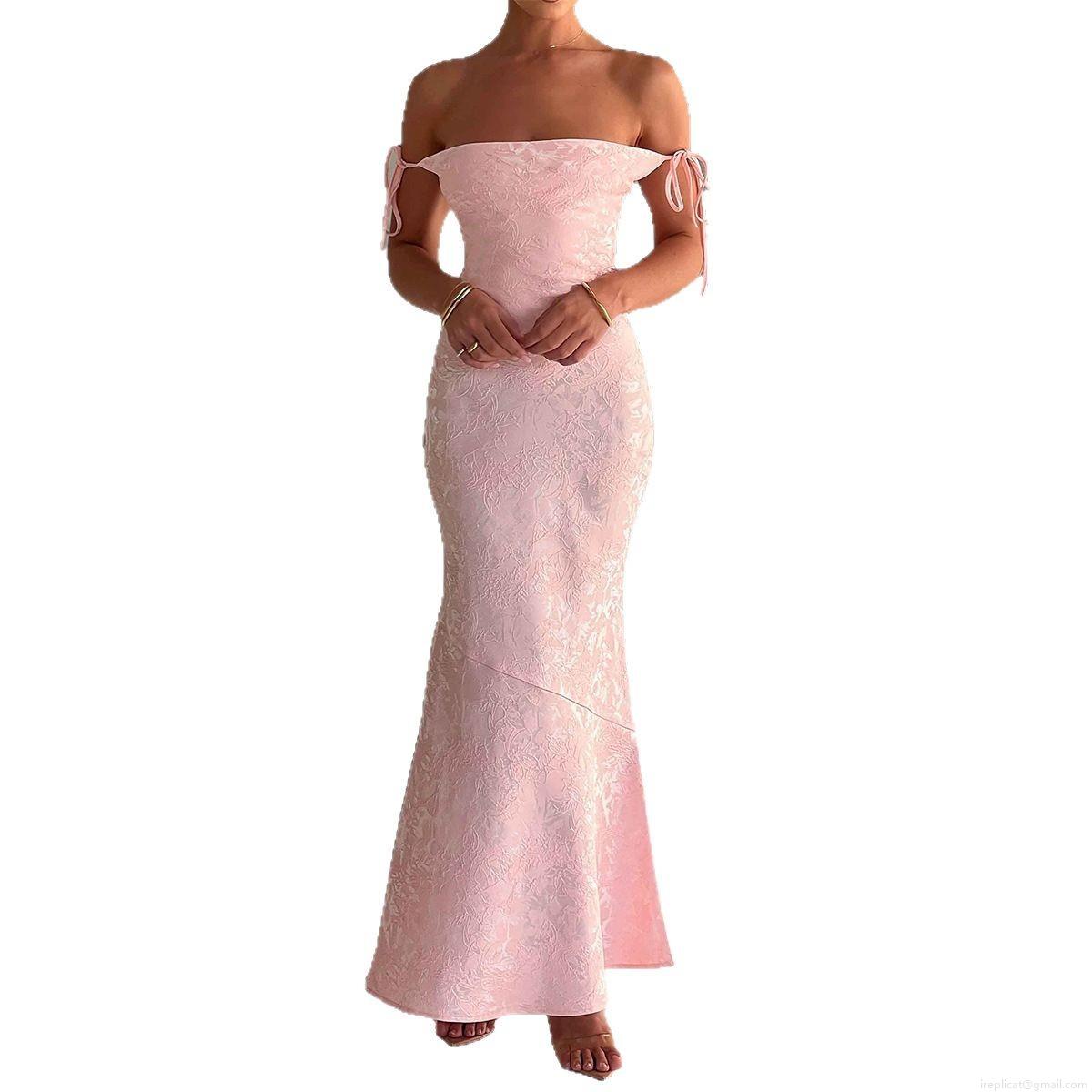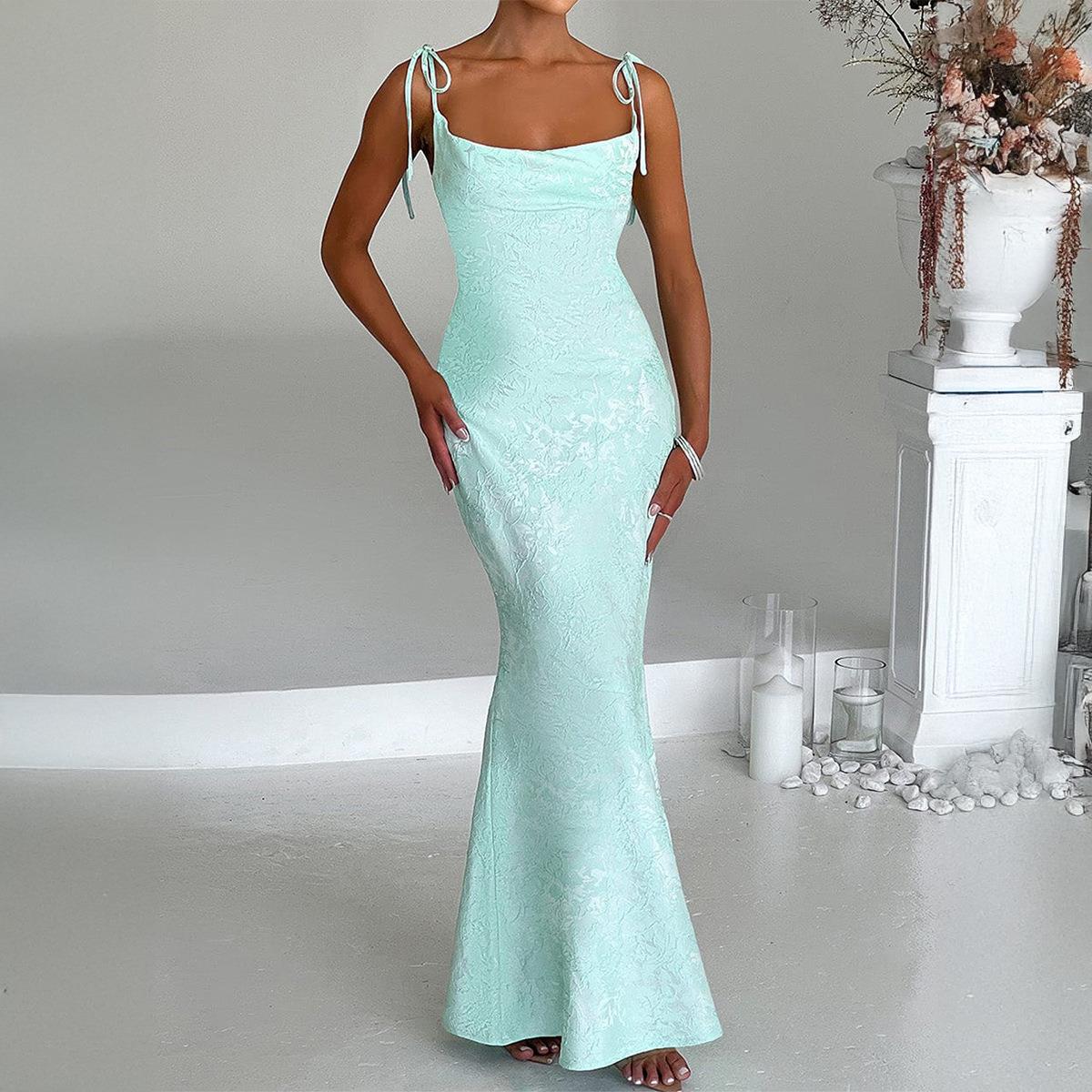 Women Elegant Jacquard Polyester Mermaid Evening Dress Backless Spaghetti Strap Maxi Gown For Party Wedding Banquet Lady Chic Outfit