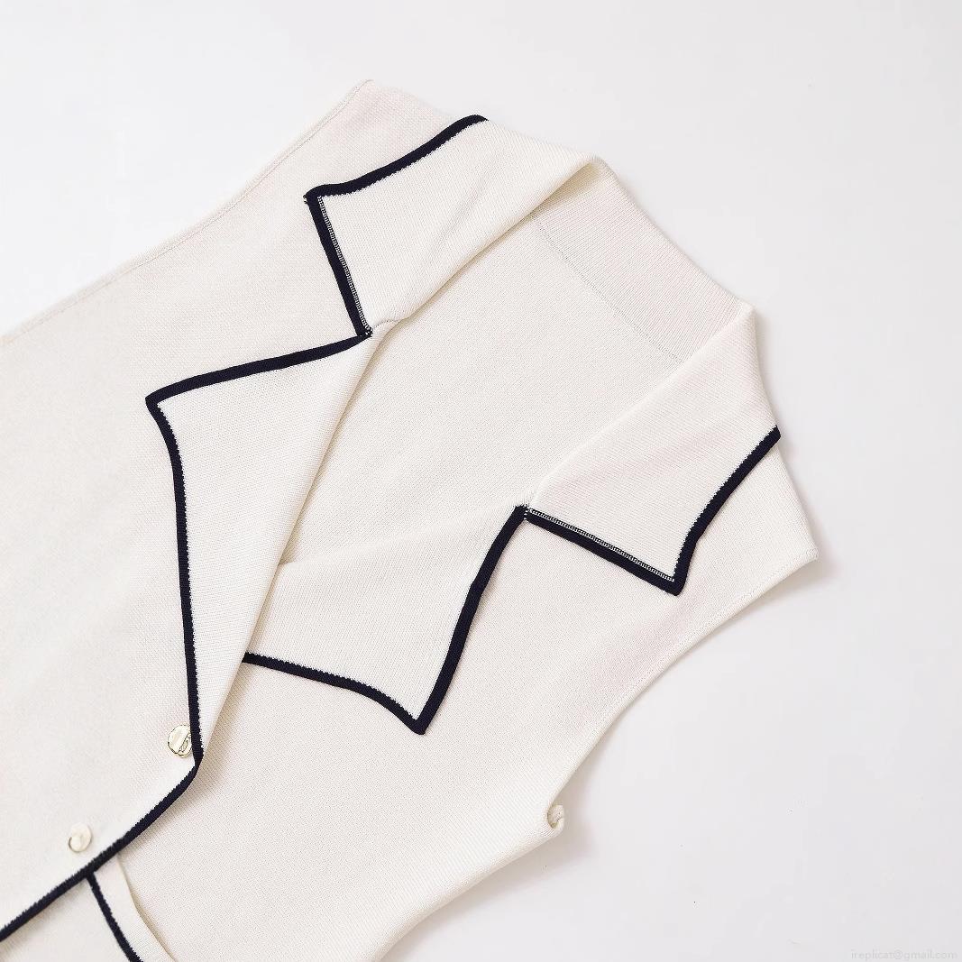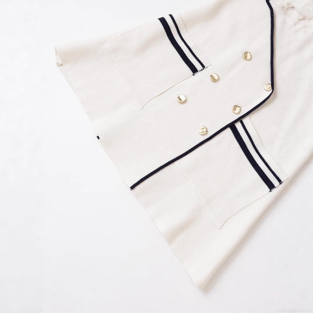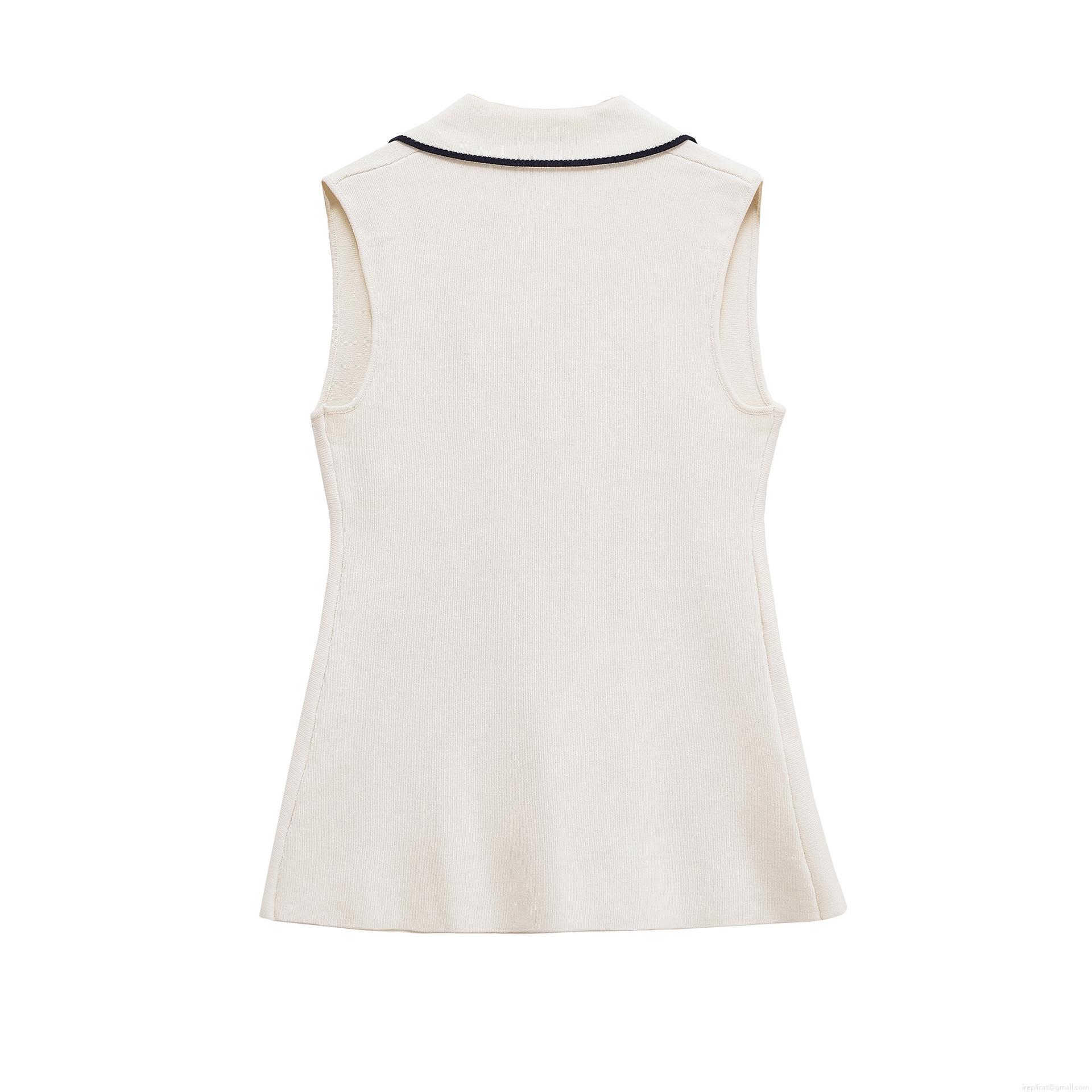 Women Elegant Knitted Vest Sleeveless Suit Lapel Tank Top Contrast Trim Double Breasted Gold Buttons Off-White Knit Waistcoat For Party Office Casual Lady Knitwear