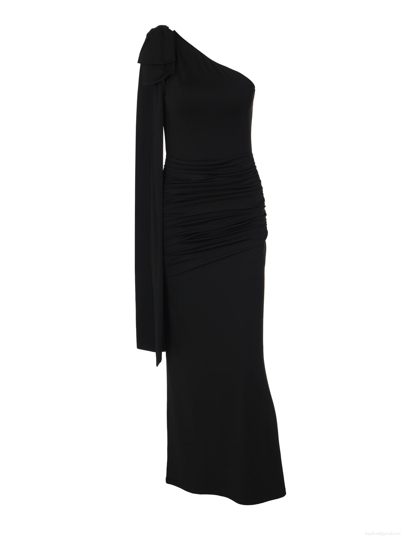 Women Elegant One Shoulder Maxi Dress Ruched Bodycon Evening Party Dress With Bow Shoulder Detail Polyester Spandex Sexy Slim Fit Formal Gown