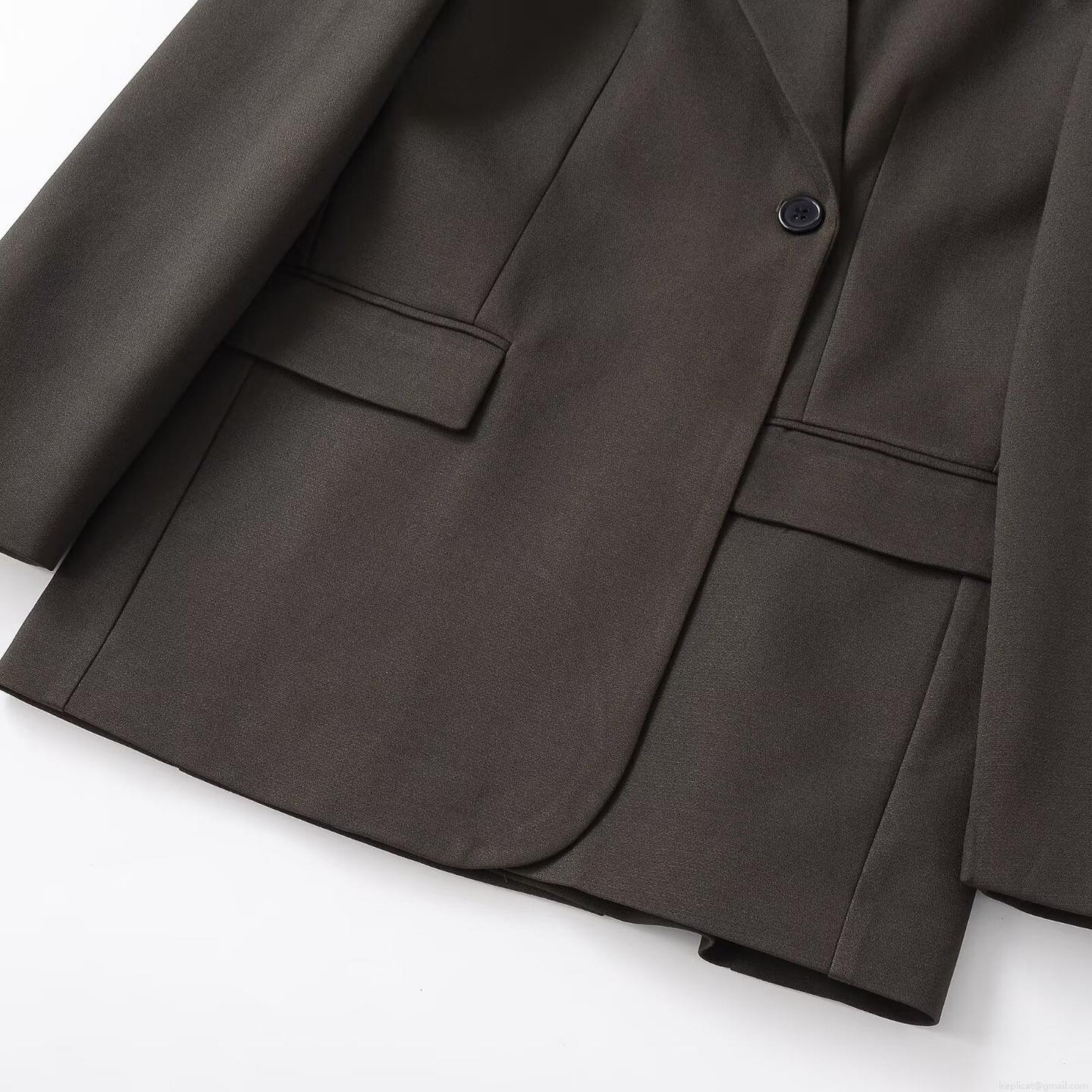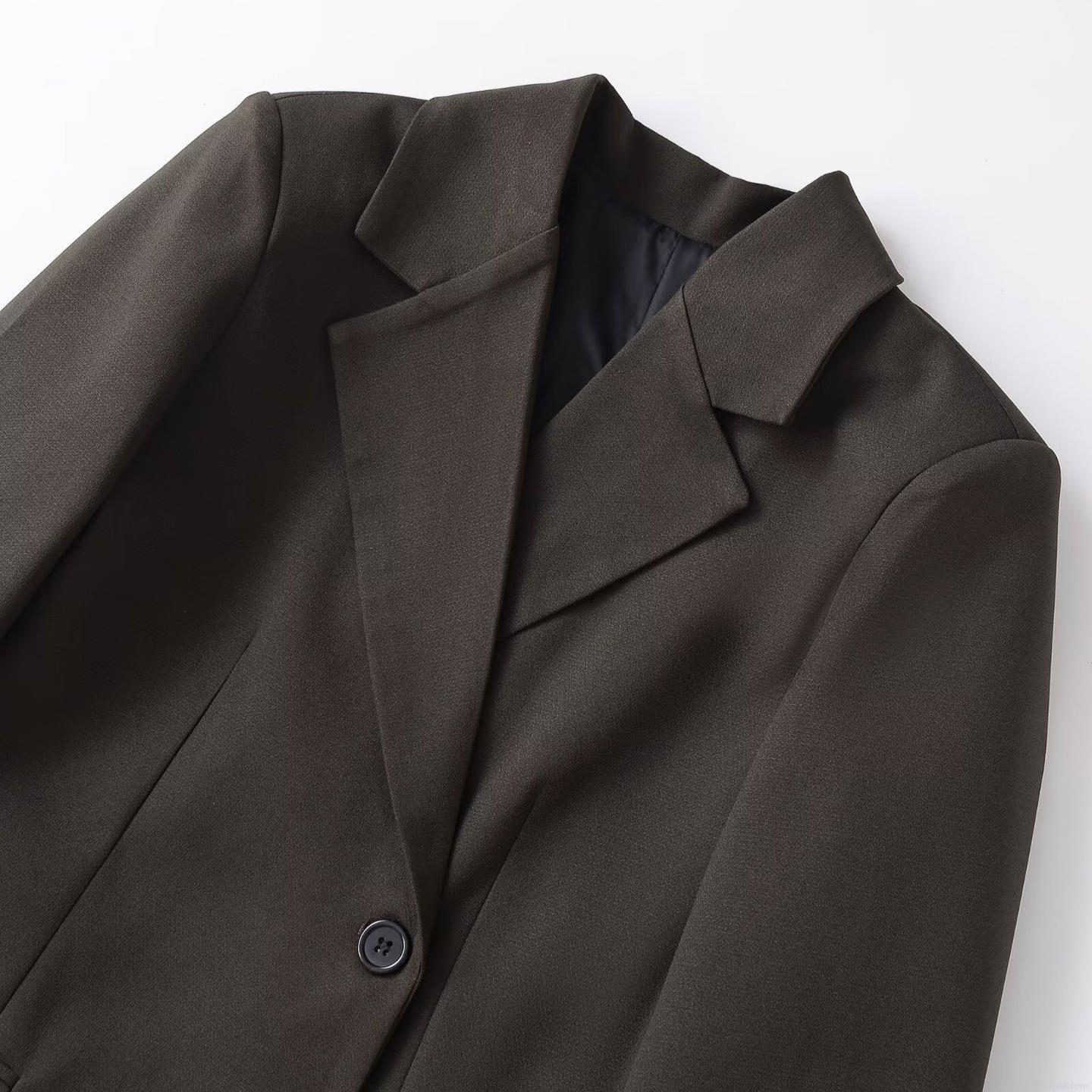 Women's Elegant Suede Texture Blazer Jacket Single Breasted Three...
