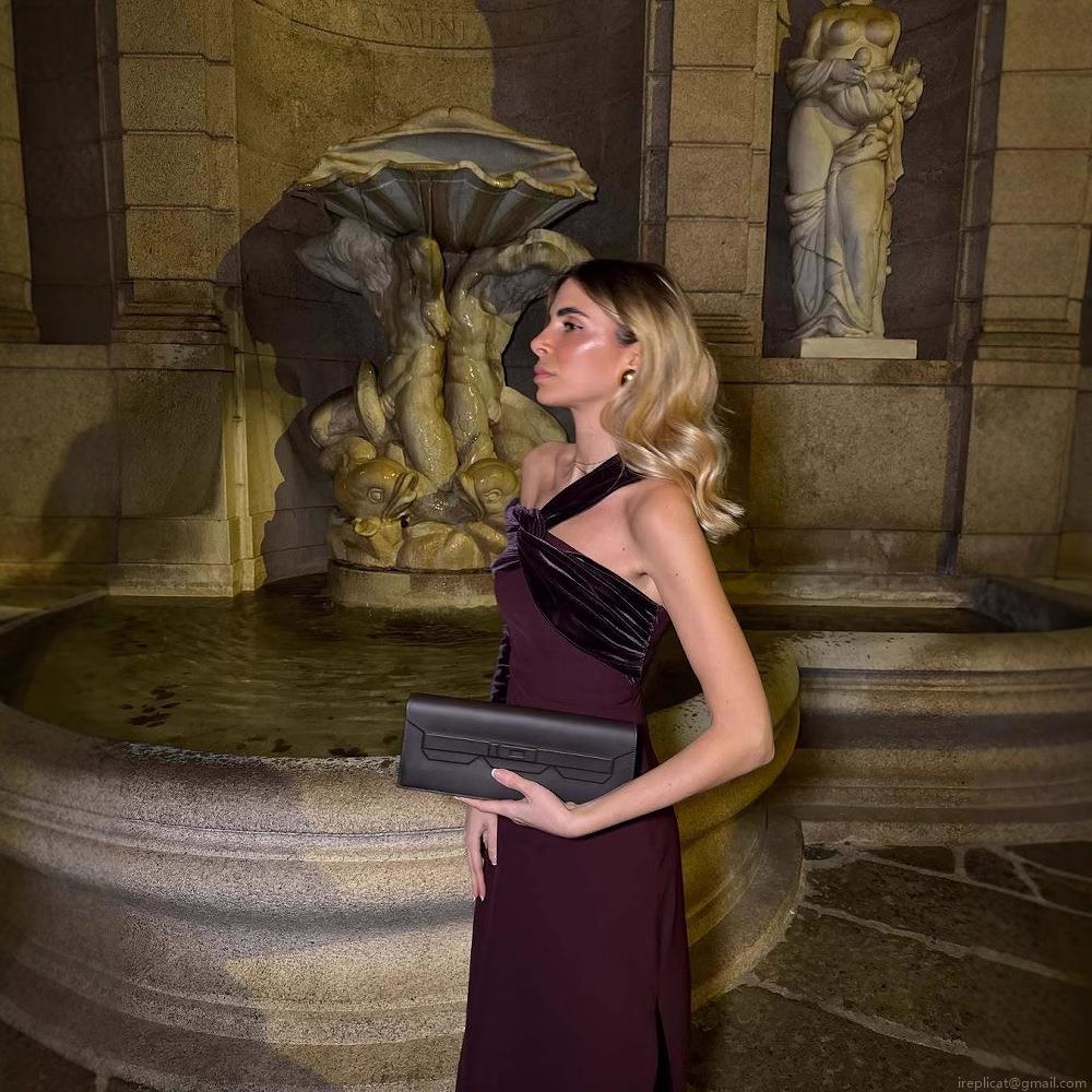 Solid Color, Sloping Shoulders, Velvet Patchwork, Asymmetrical Design, High Slit