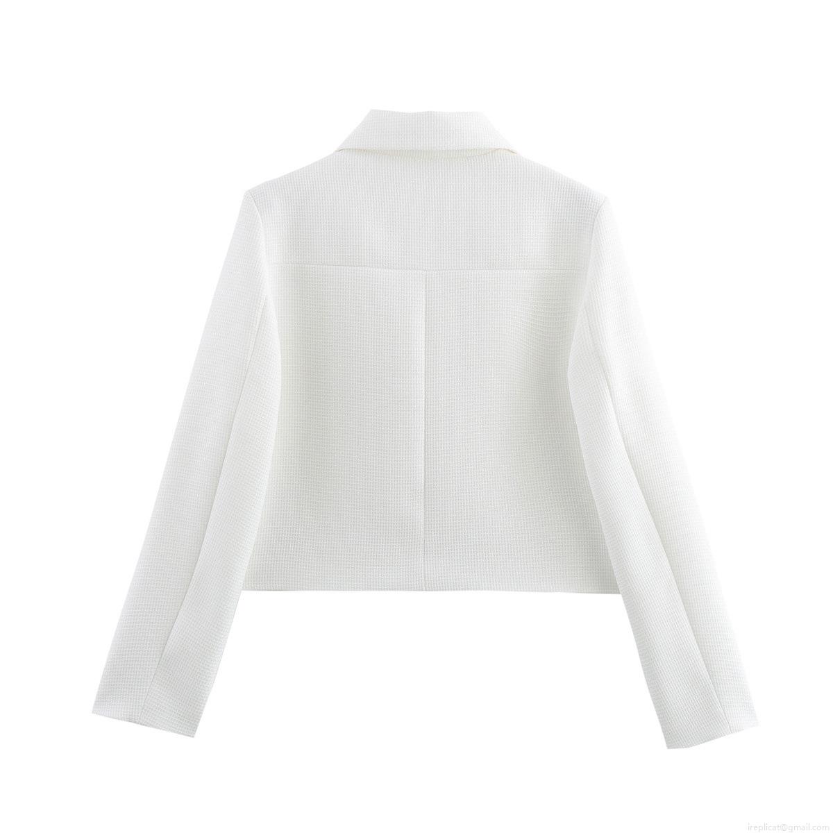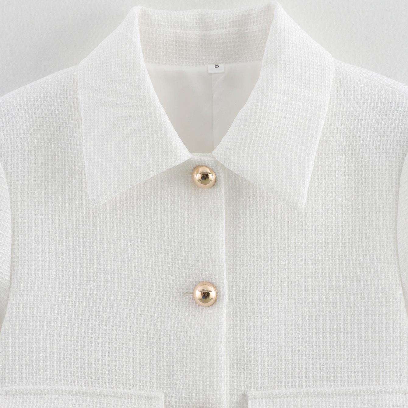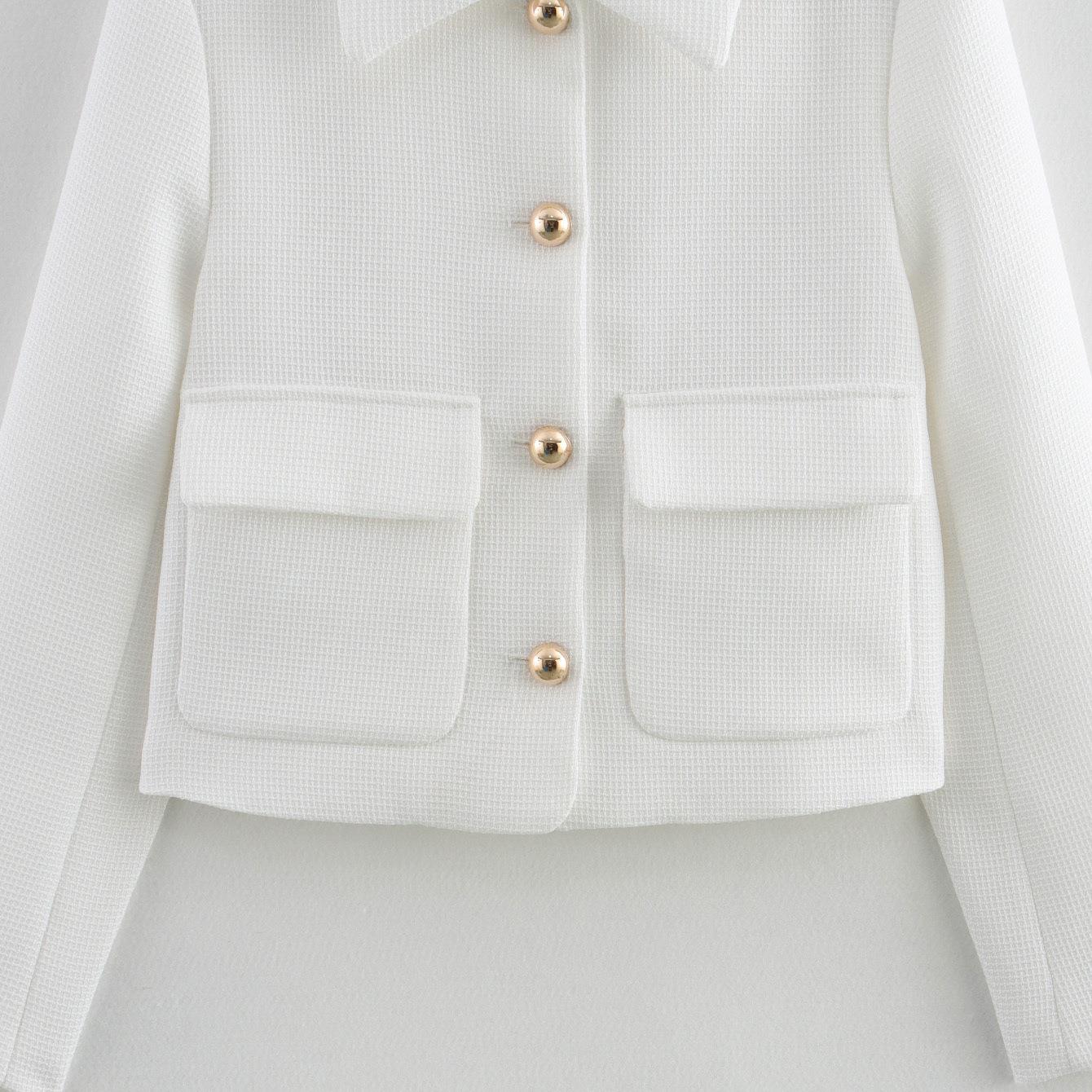 Women Elegant White Tweed Jacket Chanel Style Single Breasted Gold Buttons Long Sleeve Short Outerwear For Commute Party Ladies Fashion Crop Coat